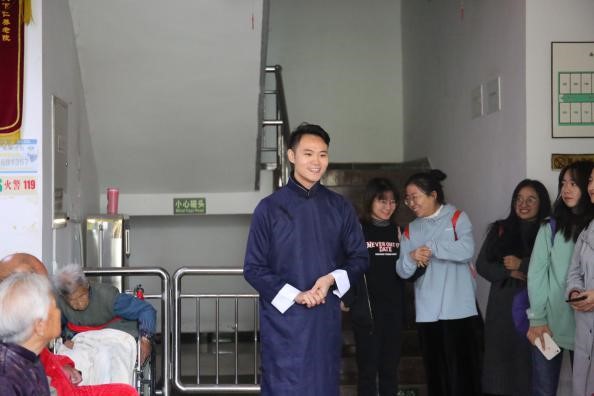 10月20日,微雨朦胧的日子,却让人感觉热情和温馨。跟随着研究生和本科生党支部的学长学姐,我们来到天下仁敬老院进行志愿服务与普法活动。在这里,我们见到许多年高却精神矍铄的老人,已过耄耋之年的并不在少数。与他们的交谈中我感受到、他们的内心是外向友好的,对待我们也十分亲切,有位爷爷热情的邀请我们猜自己写的字谜,也有其他人像自家的爷爷奶奶一样拉着我的手、询问我是不是穿的太少了,会不会感觉冷。记得一位研究生学长为他们表演节目时,他们都流露出难掩的喜悦。党的宗旨就是全心全意为人民服务,作为党小组的一员,我更深切的体会到这份责任的重大。这次的志愿服务正是一次珍贵的机会,让我在实践中找到的自我的价值,因为能让爷爷奶奶露出笑容就不虚此行。这是我进入大学的第一次外出实践服务,意义非凡。以后若还能有此类机会,必定要更珍惜,推广法律知识,为大家送去温暖。