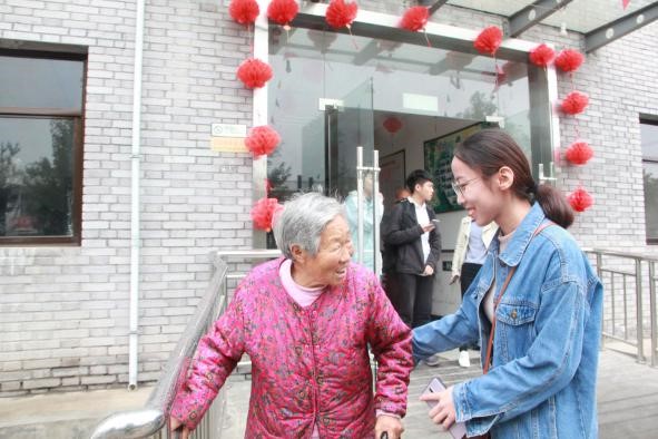 临走时依依不舍的志愿者们和老人一同合影留念,老人期待着大家的下次到来。