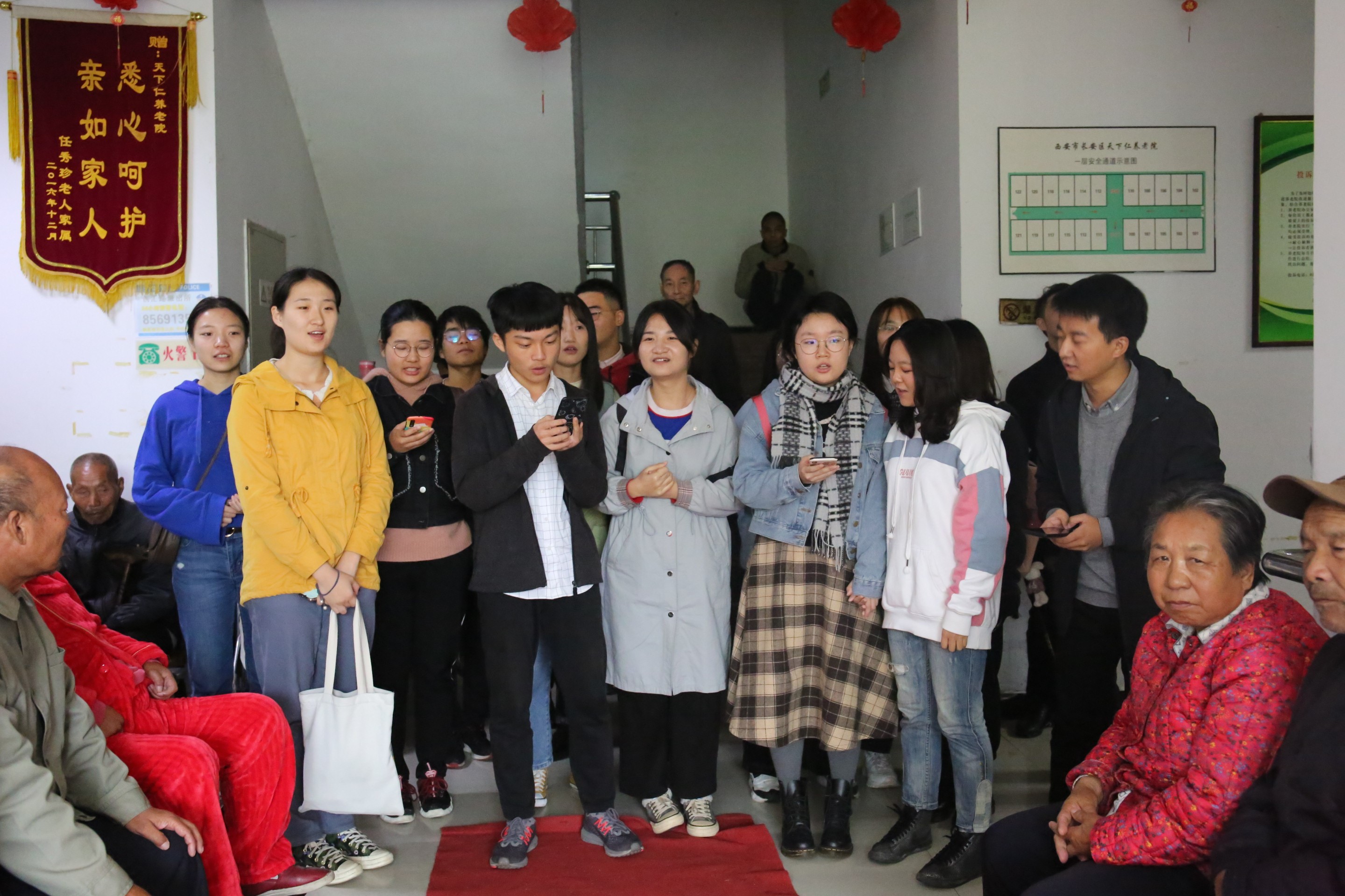 10月20日早上,我院本科与研究生各级党小组成员及党员代表前往长安区天下仁老年公寓慰问探望老人。此次活动受到了天下仁老年公寓工作人员的热烈欢迎,充分展示了当代大学生关爱老人、热心公益、服务社会的优秀品质。