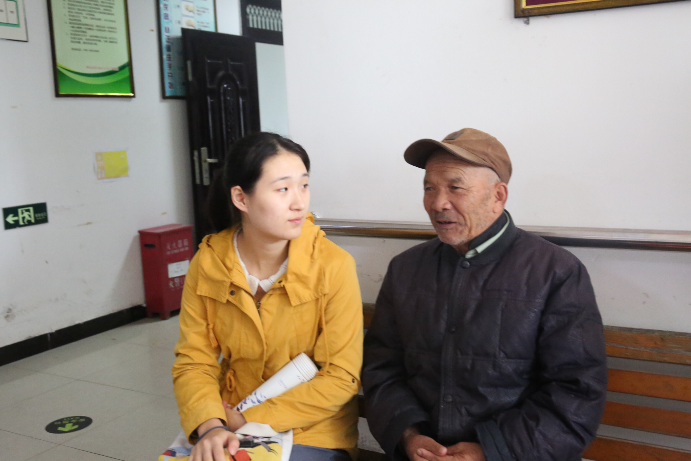 我们刚进入敬老院,可能是下雨的原因,老人都坐在了楼道里面。我们被管理人员带入一个办公室被告知一些注意事项等。之后我们两三个一起进入房间去帮助老人。我进的这个房间里面住了两位老人,经过工作人员的介绍,我们得知其中一位是昨天才入住的,在跟这位爷爷交流之后我们得知他退休之前是西北农林科技大学毕业的,所以在我们来了之后非常激动,从一个人默默的坐在那里突然变得话多起来。他问了我们的学校和专业,也很自豪的跟我们介绍自己当年的专业以及自己的母校。除此之外,爷爷还问我们有没有去过北京,然后非常激动的给我们讲述自己当年去北京的经历。在听爷爷的讲述时可以看出他对自己的过去经历非常自豪和怀念。但是他也说自己在这里几乎没有可以沟通的伙伴,也可以看出爷爷内心的无奈。