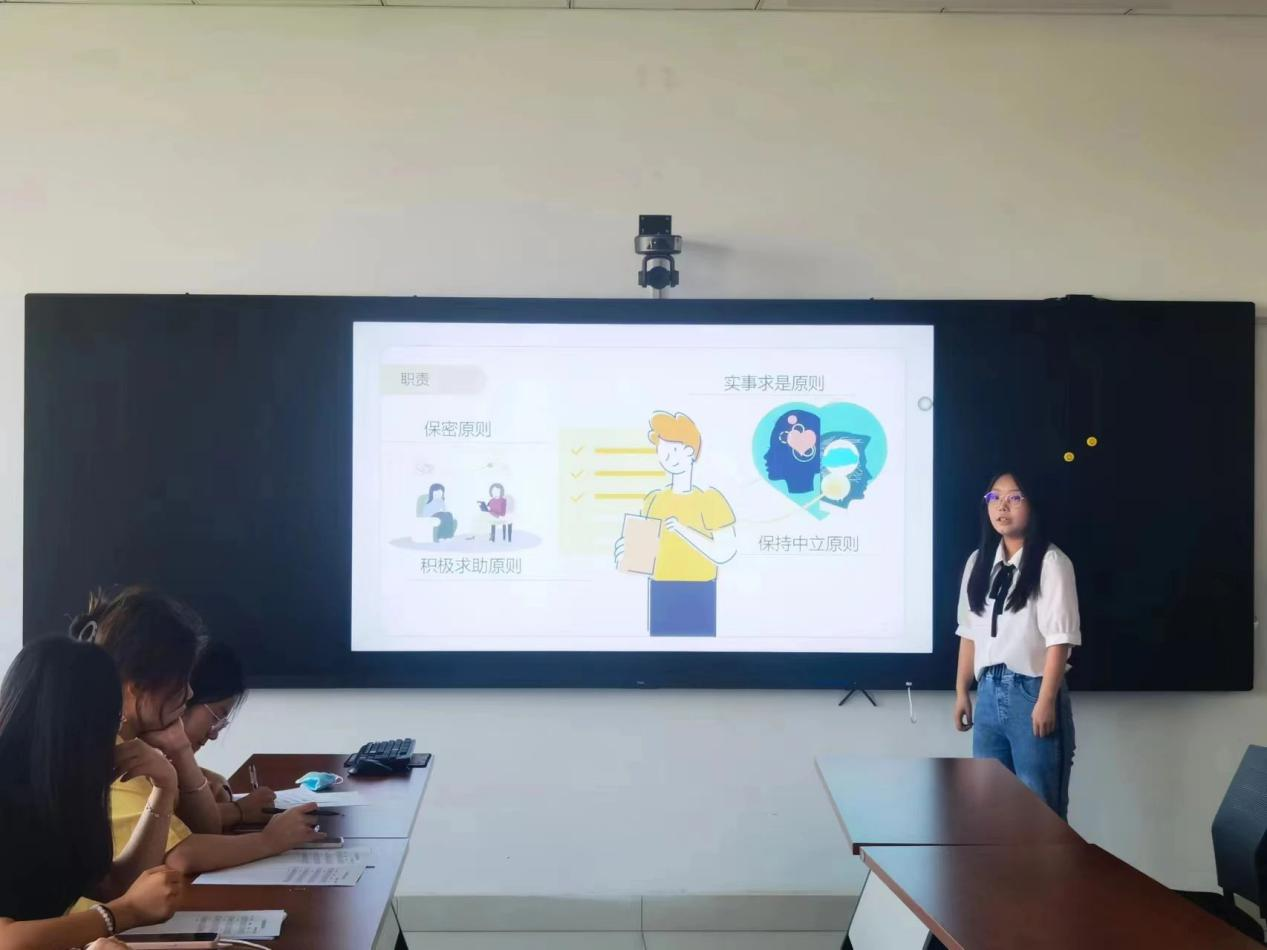 心理委员汇报之后,对评委评分表进行汇总,推选出一名心理委员参加校赛。最后,问贝宁老师对此次活动进行了总结,给予心理委员建议与期望。