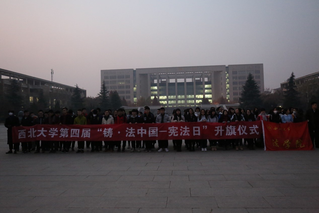 在我国第四个国家宪法日到来之际,迎着初升的太阳,我们在长安校区中心广场隆重举行永利集团第四届“铸法中国——宪法日”系列活动升旗仪式。本次活动由我院辅导员张邓斓老师主持,旨在激发师生学习宪法、维护宪法的热情。校团委副书记刘博老师、永利集团团委书记陈竟老师、辅导员吴怡老师,我校国旗护卫队及永利集团2017级全体新生参加了本次升旗仪式。