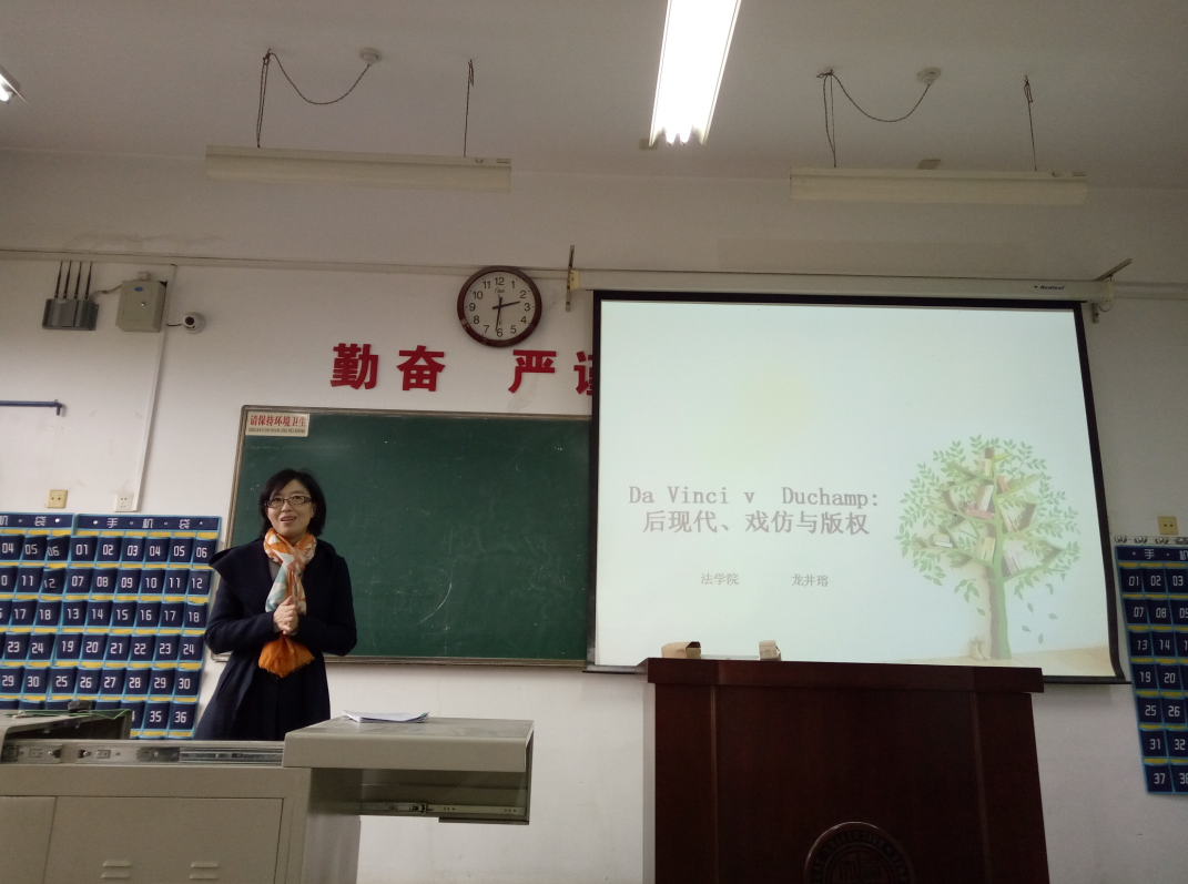 10月29日,研究生院王浩老师在长安校区1308教室为学院师生做“树立法律人职业理想 砥砺职业者学术素养”的学风建设讲座,学风建设讲座之后我院龙井瑢老师给师生带来题目为“达·芬奇诉杜尚案:后现代、戏仿与版权”的学术讲座,姜昕老师担任学术讲座的点评嘉宾。