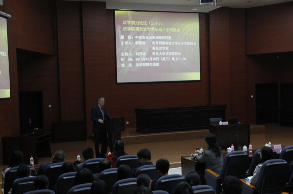 10月28日,匈牙利赛格德大学孔子学院院长、著名汉学家李察德教授应我校永利集团邀请为我校师生做“中欧关系及欧洲难民问题”的学术讲座。200余名师生听取了讲座。此讲座是我院研究生学术月活动系列讲座(一)。