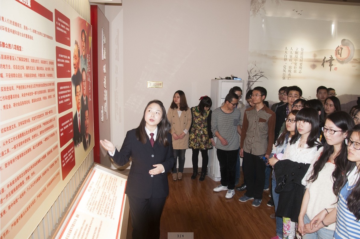 70余人的队伍在工作人员的带领下来到了检察院七楼的廉政教育基地,现已经是西安市廉政教育基地,接待过成千上万的参观人员。在解说员生动的讲解中,老师和同学们参观了廉政教育基地展厅的思想篇、制度篇、警示篇、人生篇四部分,了解到廉政制度的形成、发展、制度规定、反面素材以及关于理想、事业、家庭、朋友、修为等多方面知识,曲折的历程、生动的小故事、落马高官的忏悔,触动着70多颗年轻的心,集中讲解、统一观看也让廉政教育更加深入人心!