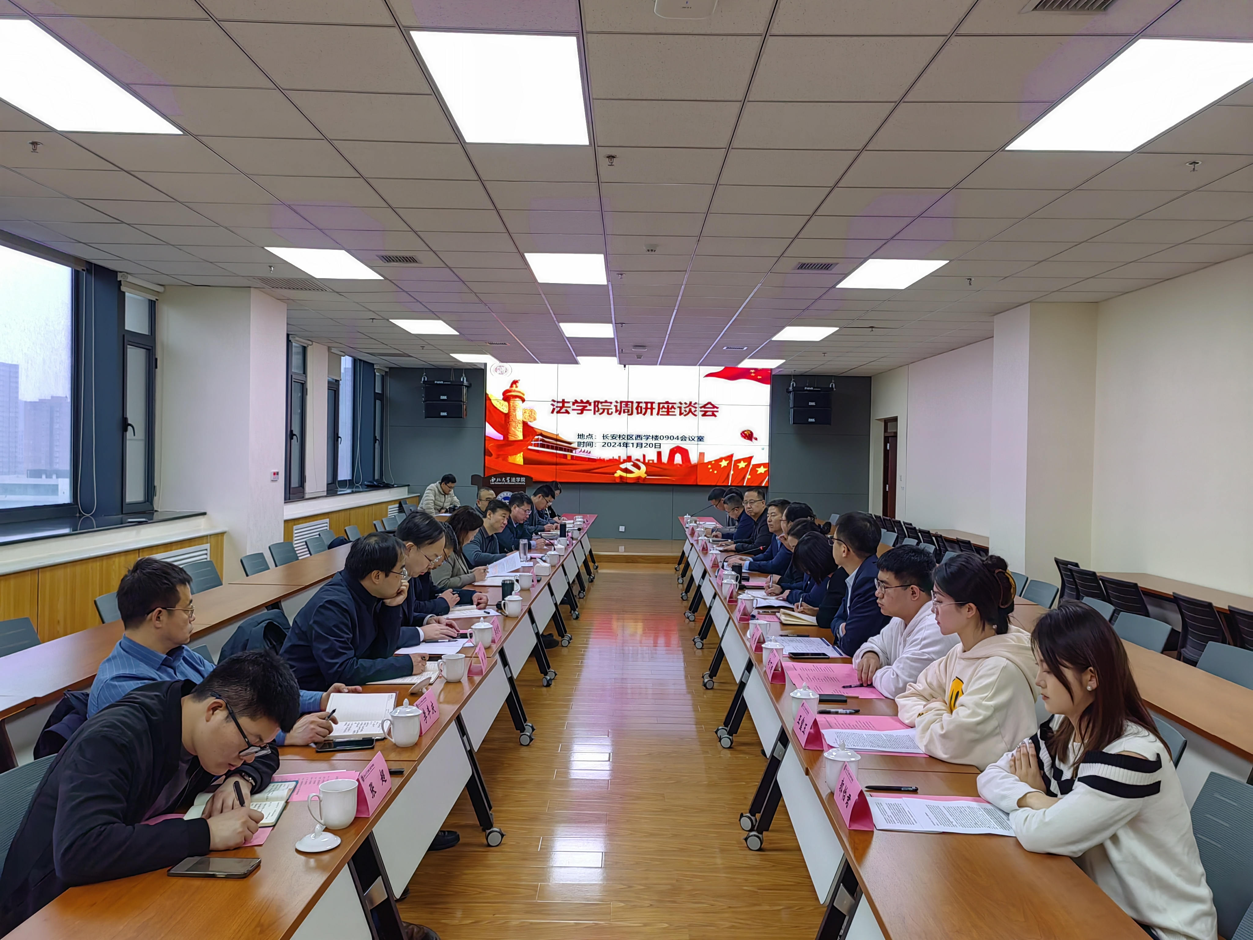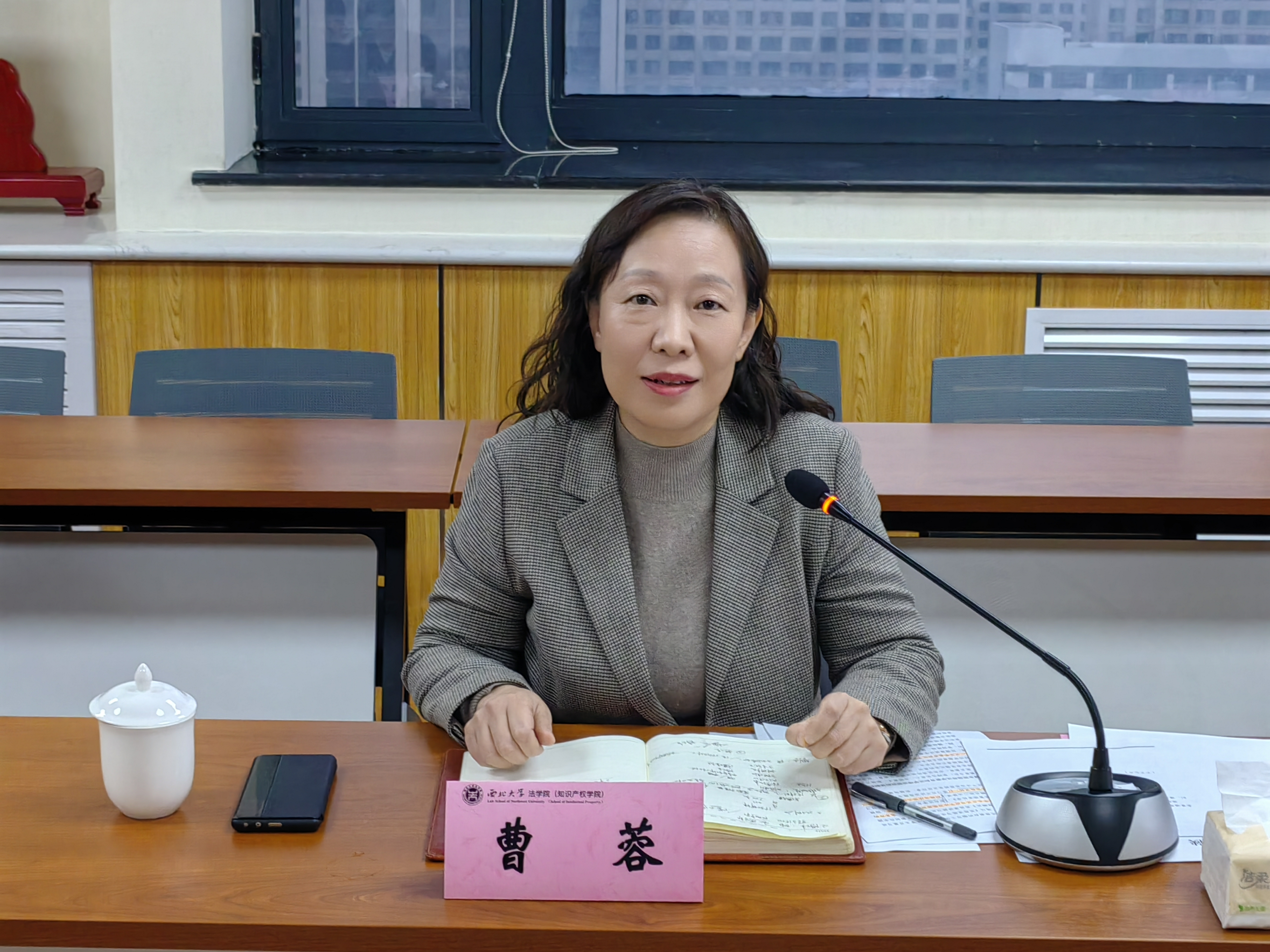 听取学院汇报和师生代表交流发言后,参会校领导分别作了讲话。曹蓉表示作为法学院的联系校领导,将继续关注支持学院发展,希望学院在学科建设方面要积极开展交叉融合,开拓具有陕西本领域品牌特色的法治培训服务,并就继续做好博士点申报等相关工作提出了规划建议。
