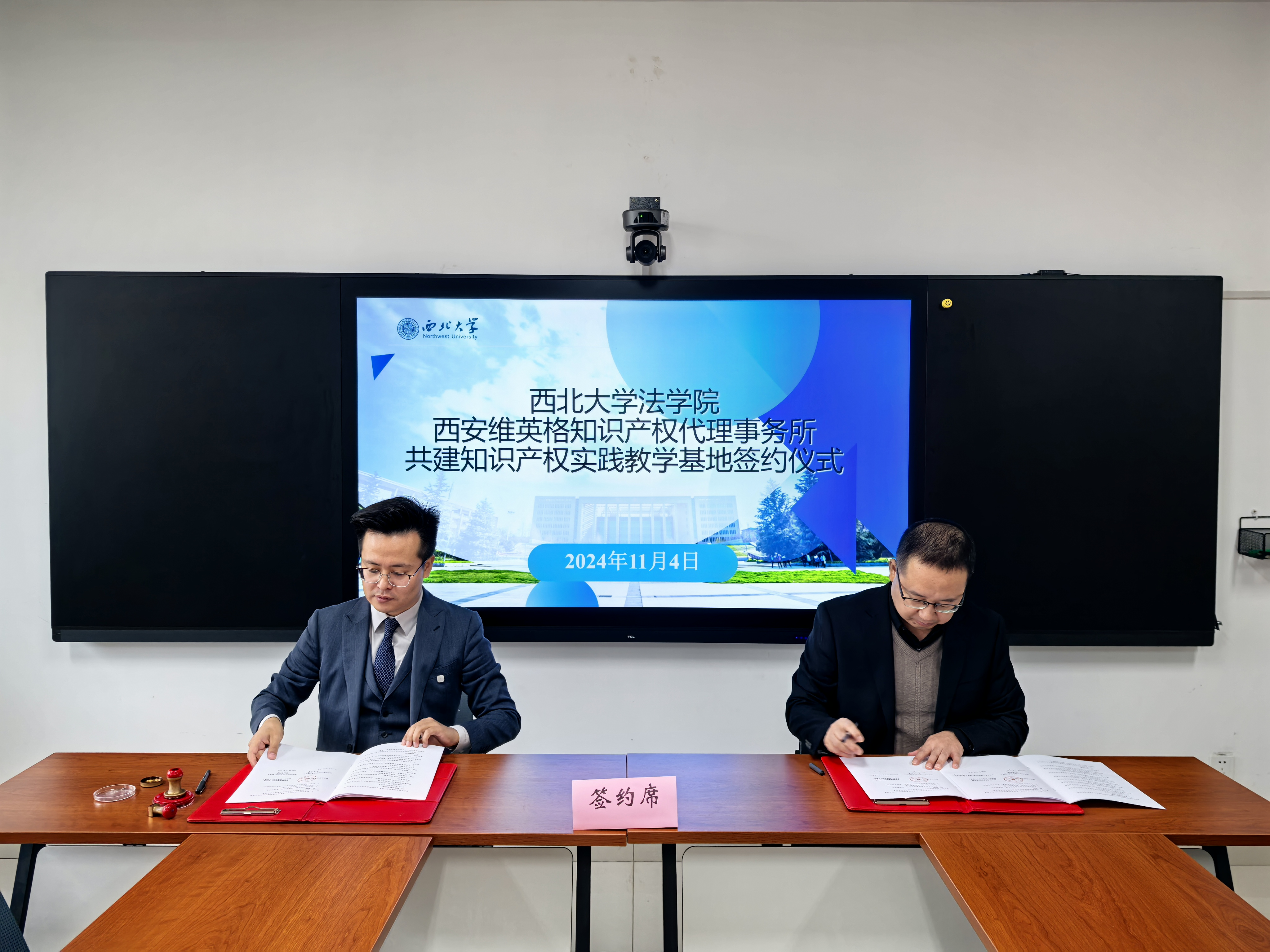 接下来,我院王思锋院长与事务所李斌栋管理合伙人分别代表双方签订了《77779193永利官网集团(知识产权学院) 西安维英格知识产权代理事务所(普通合伙)共建知识产权教学实践基地合作协议》。