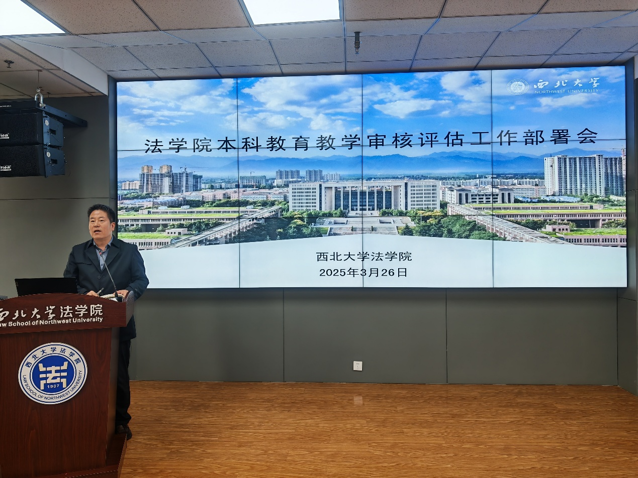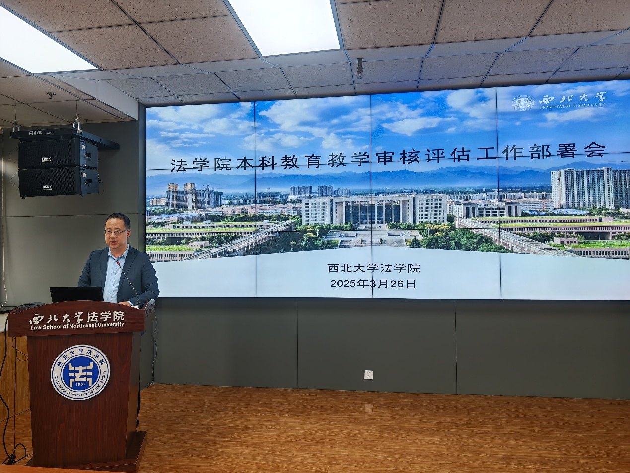 2025年3月26日下午,学院在西学楼9层北侧0904会议室召开本科教育教学审核评估工作部署会,学院党委书记李一凡,党委副书记、院长王思锋,党委副书记丁晓雯,副院长代水平、崔玲玲、许博,学院工会主席卞辉及全院教职工参加会议。