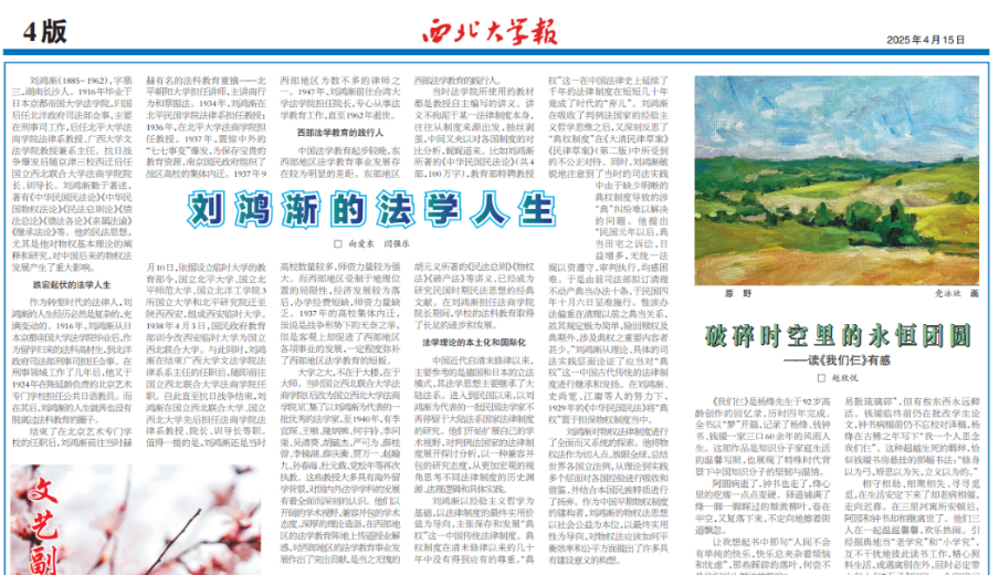 文章信息:向爱东、闫强乐:《刘鸿渐的法学人生》,《永利集团报》2025年4月15日第4版。