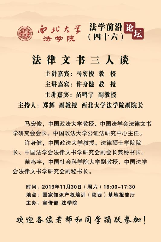 讲座通知∣马宏俊 许身健 苗鸣宇: 法律文书三人谈