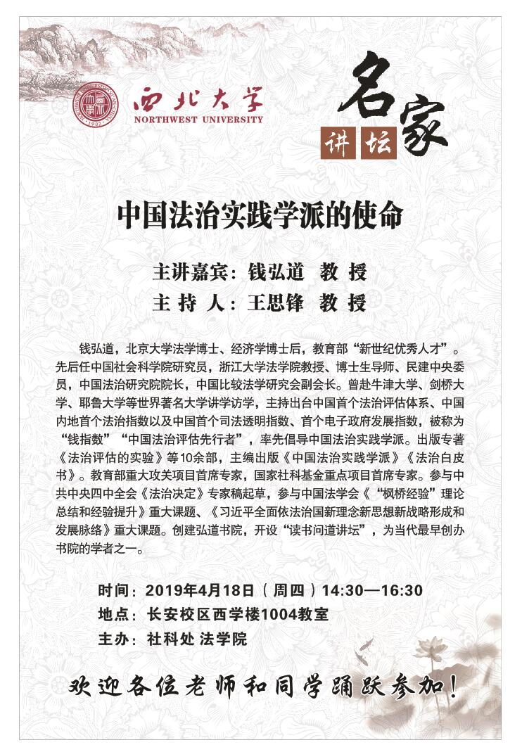 讲座通知:名家讲坛——“中国法治实践学派的使命”
