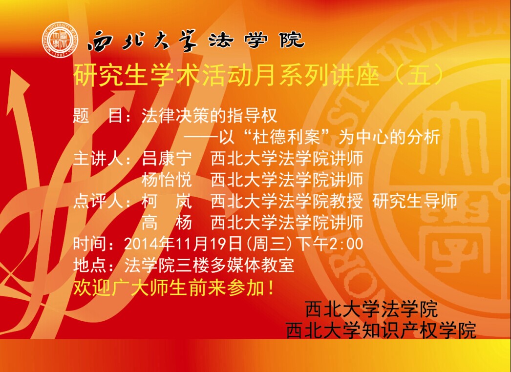 永利集团研究生学术活动月系列讲座(五)