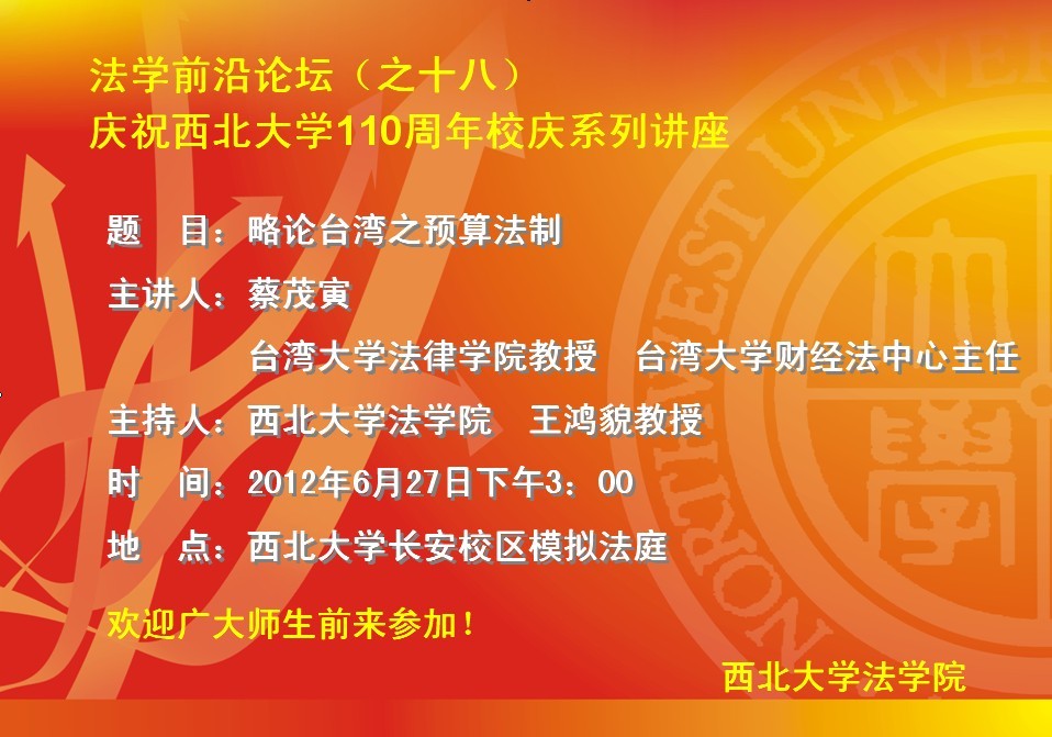 法学前沿论坛(之十八)暨庆祝我校110周年校庆系列讲座