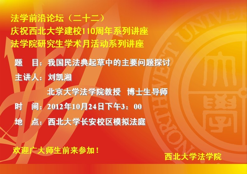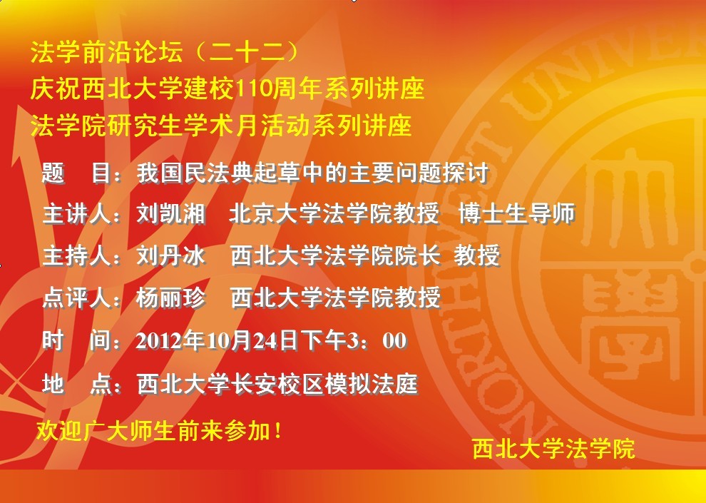 法学前沿论坛(二十二)暨庆祝我校建校110周年系列讲座