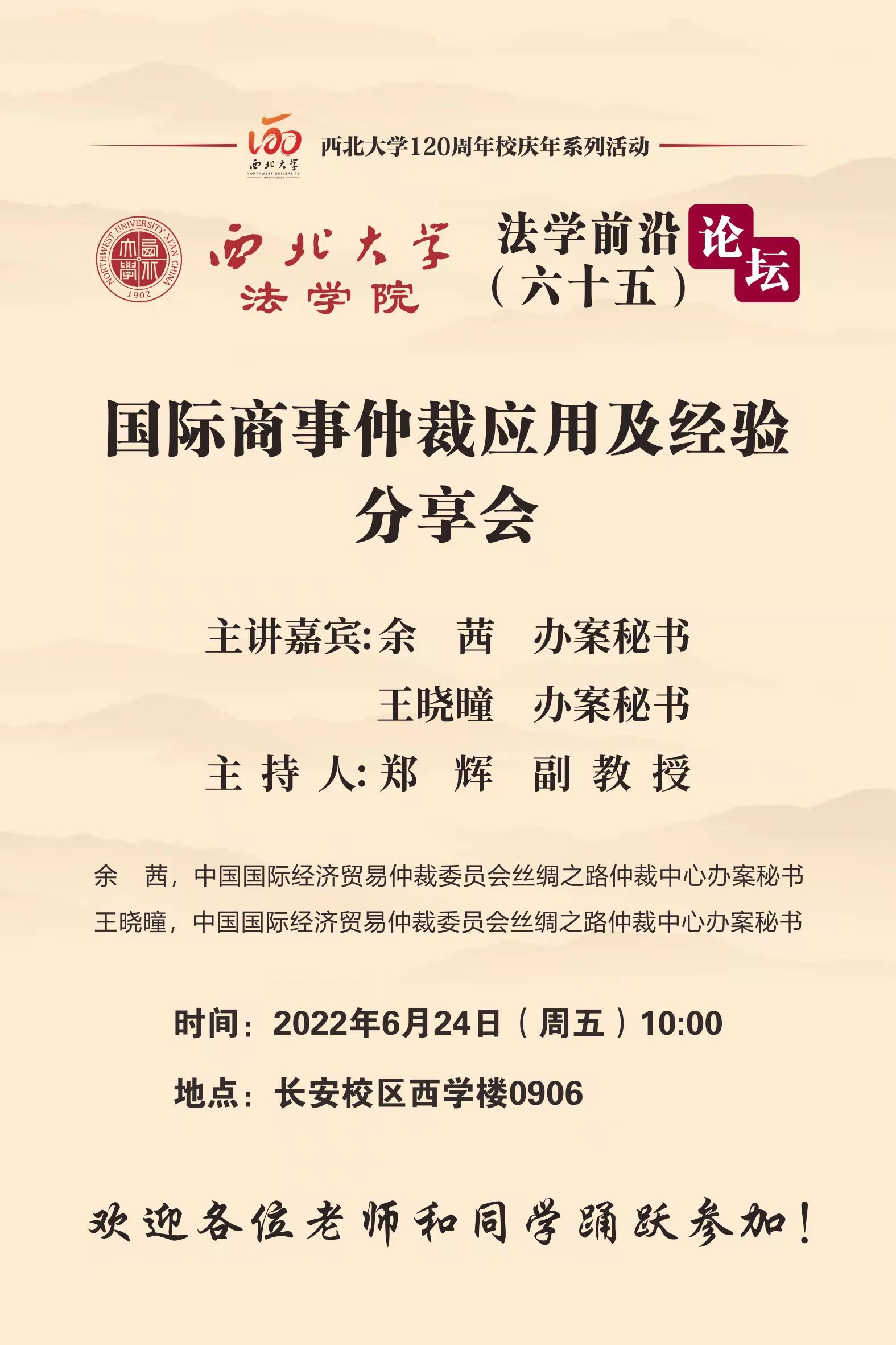 法学前沿论坛(六十五)——国际商事仲裁应用及经验分享会