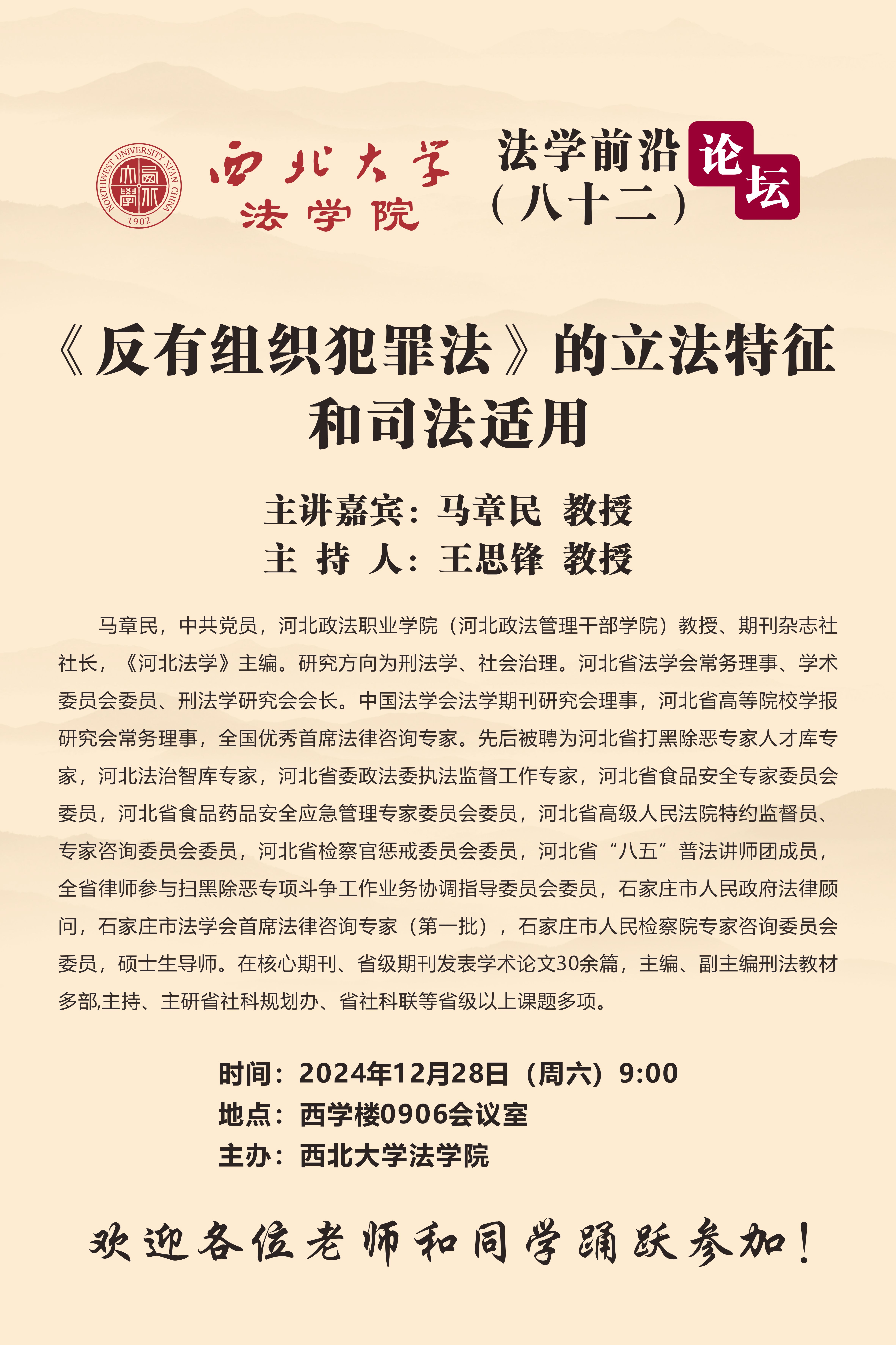 法学前沿论坛(八十二)——《反有组织犯罪法》的立法特征和司法适用