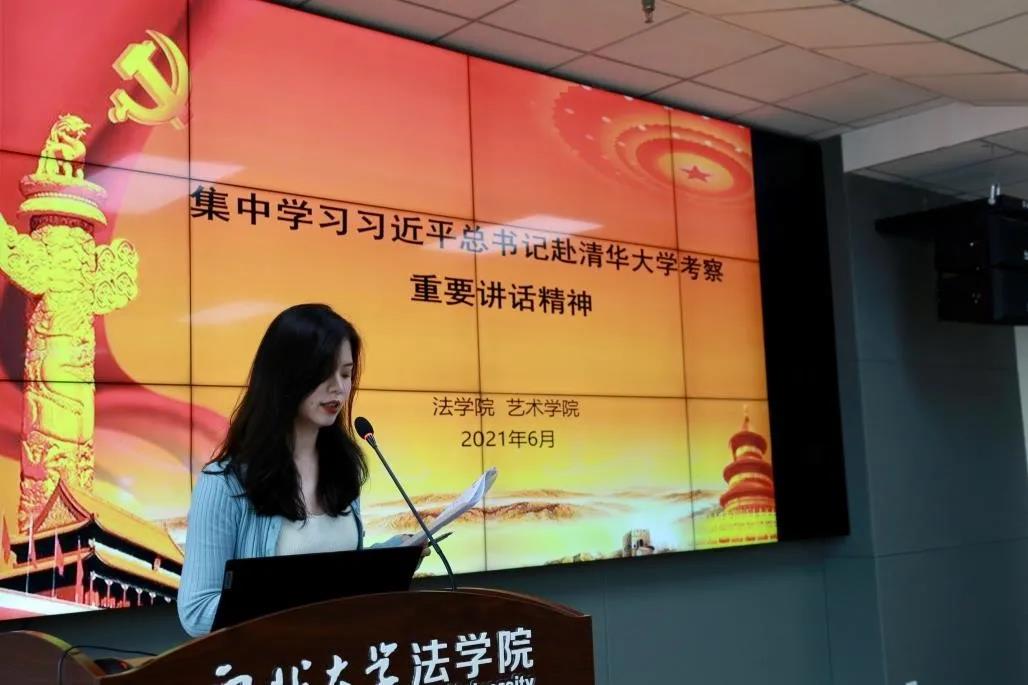6月3日下午,我院与艺术学院合办的“习近平总书记赴清华大学考察重要讲话精神”党史学习教育及“我为学生办实事”知识产权保护学术讲座在长安校区西学楼永利集团会议室举行。我院党委组织员吴怡、艺术学院辅导员宋培源,永利集团全体发展对象、永利集团青马学员、艺术学院青马学员及部分党员共80余人出席会议。