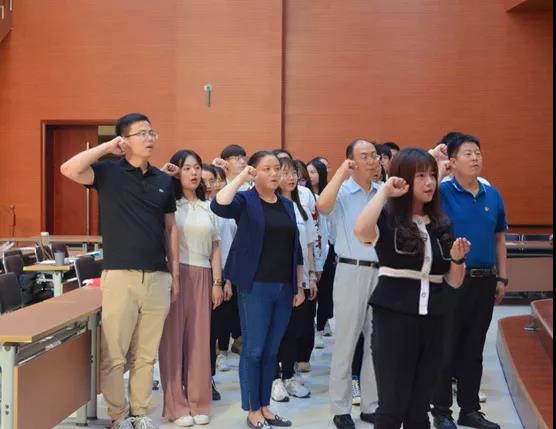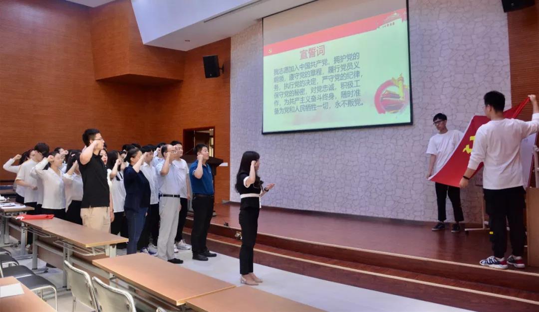 接下来进入党员宣誓环节。面对鲜红的党旗,党员们在吴怡同志的带领下庄严地向党组织宣誓:我志愿加入中国共产党,拥护党的纲领,遵守党的章程,履行党员义务,执行党的决定,严守党的纪律,保守党的秘密,对党忠诚,积极工作,为共产主义奋斗终身,随时准备为党和人民牺牲一切,永不叛党。铮铮誓言,是各位党员对党和人民做出的庄严承诺,师生们用洪亮的声音表达出加入中国共产党全心全意为人民服务的决心。