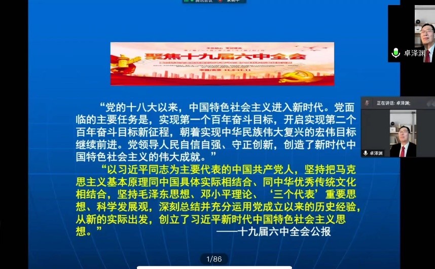 11月18日,为贯彻落实中国共产党第十九届中央委员会第六次全体会议精神,深入学习中国共产党依法执政的经验,77779193永利官网集团的同学聆听了由中国法学会法学教育研究会开设的学习大讲堂。本次讲堂通过线上会议的方式举行,主题为“中国共产党依法执政的历史实践及其成果经验----中国共产党第十九届中央委员会第六次全体会议精神的法治解读”。本次参会人员包括永利集团青马班学员、校青马团菁英3班学员以及2020级永利集团本科生。