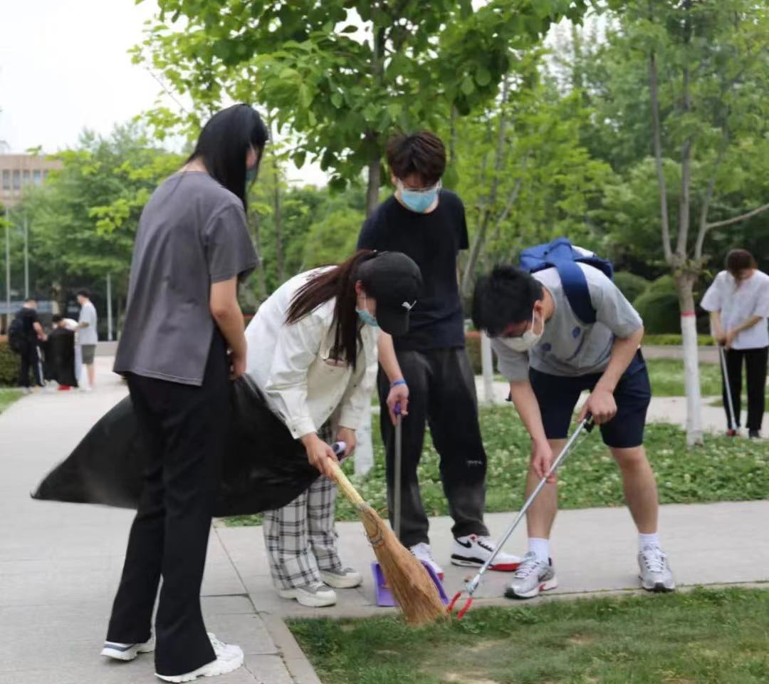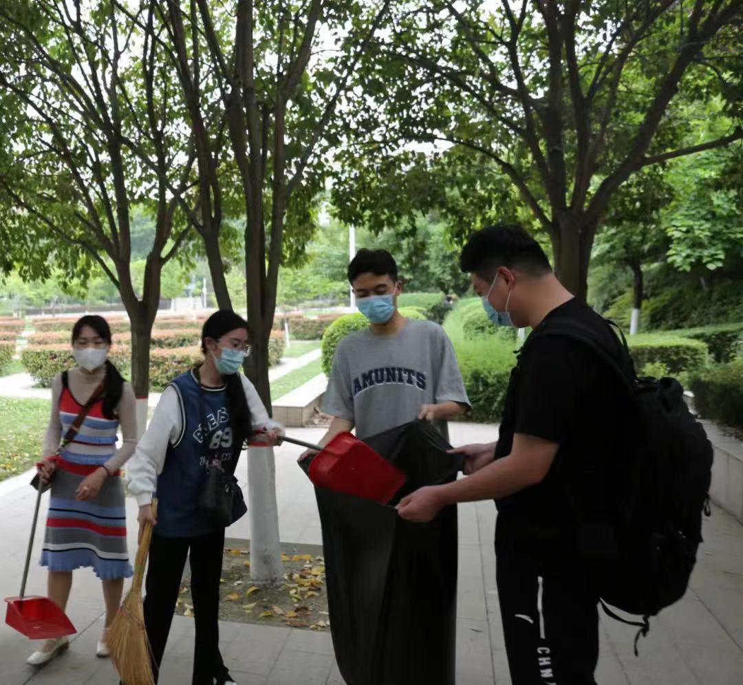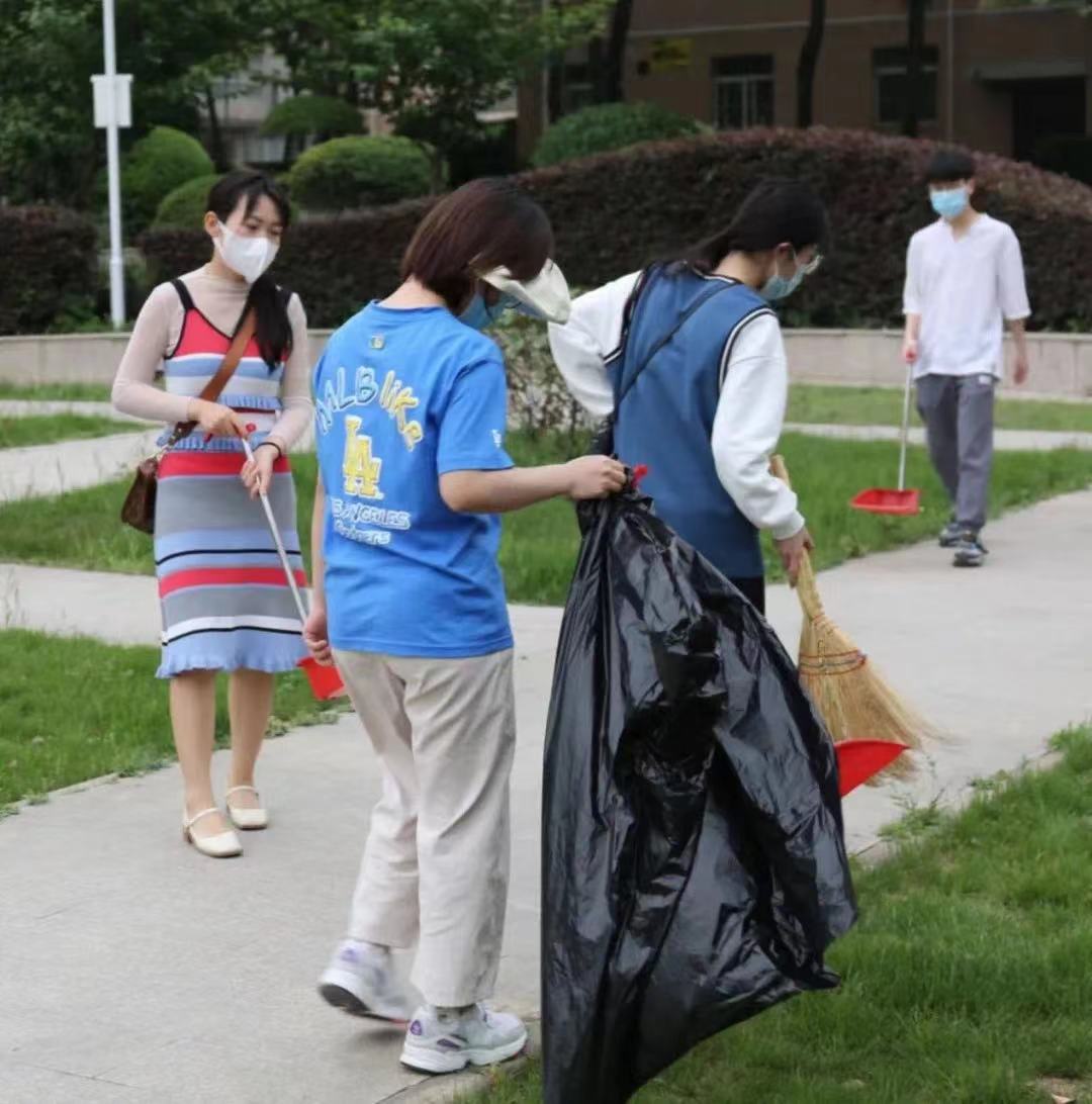 傍晚的微风吹拂着同学们劳动后泛红的脸庞,打扫的过程虽然劳累,但是参与的同学们热情高涨、干劲十足,展示着新时代青年的责任担当!