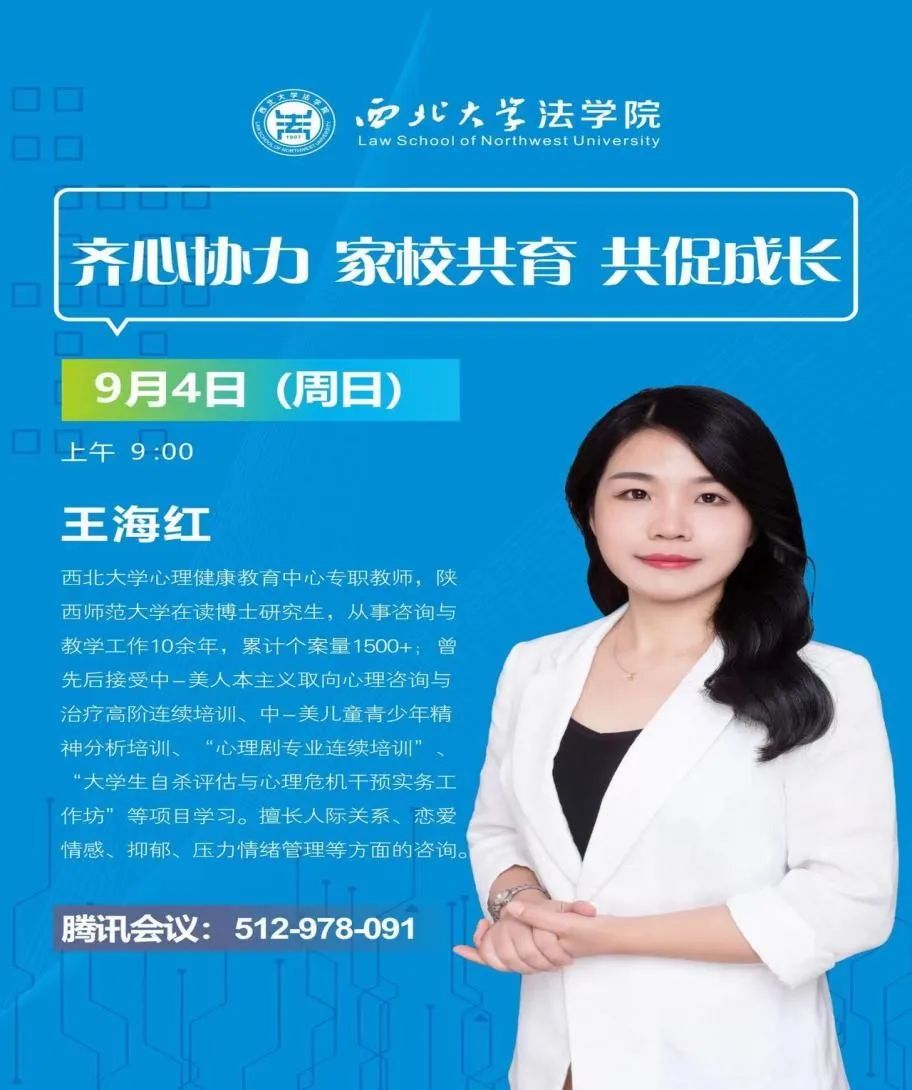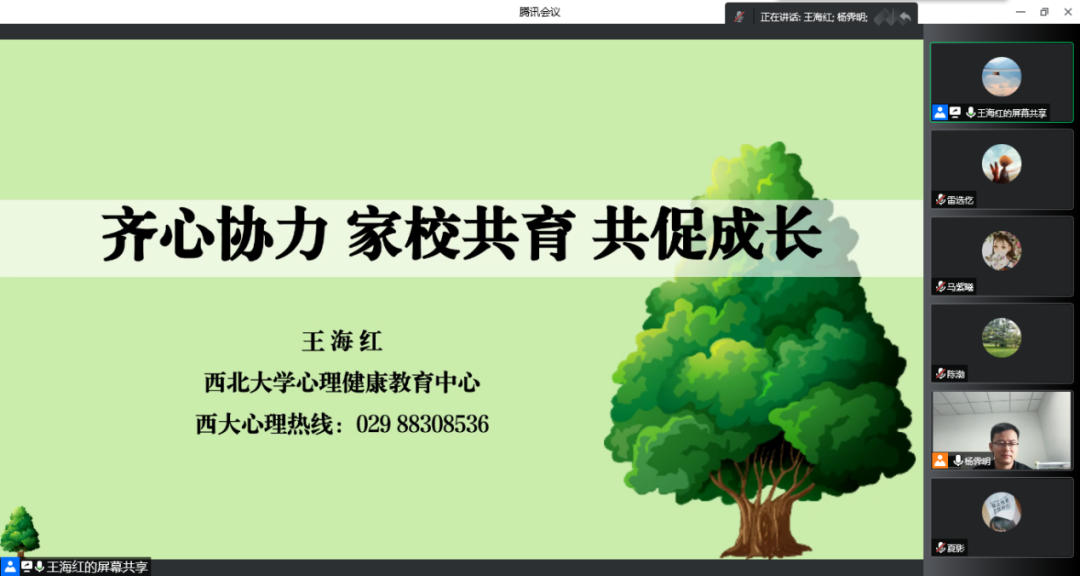 最后,王海红老师呼吁各位家长和学校共同保护大学生心理健康,强调家长对学生的巨大影响,希望每位家长能够重视学生学业,多关注学生心理,多和学生沟通,让每一位大学生能够积极、乐观、健康地度过四年大学生活。