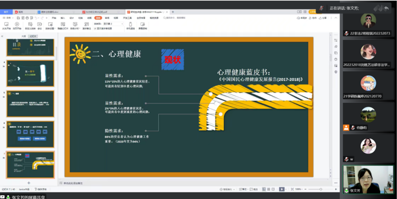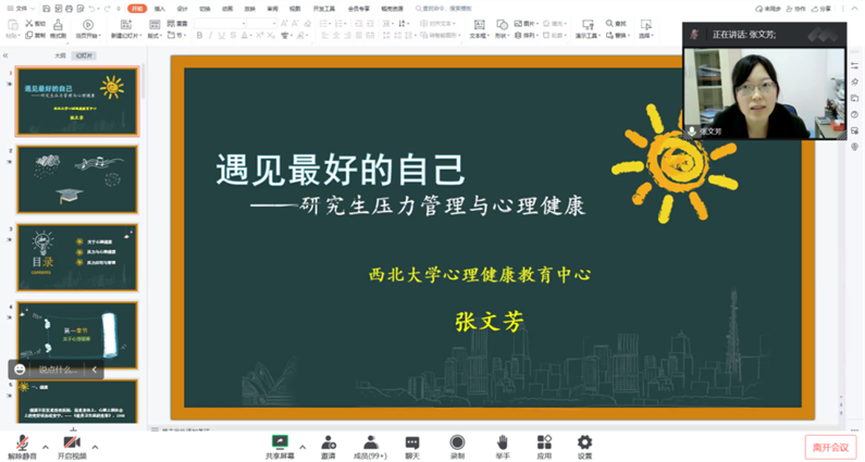 2022年11月16日下午15时,我院顺利开展研究生学术活动月——“研究生压力管理与心理健康”主题讲座,本次讲座特邀我校心理健康中心副主任张文芳老师主讲,永利集团200余名学生以腾讯会议的形式线上参加。