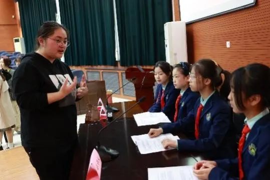 我院学子为小朋友们普及庭审的相关知识,使他们在接下来的庭审中获得更加强烈的感受,留下更深的印象,并对法学产生浓厚的兴趣。