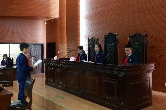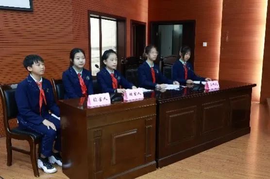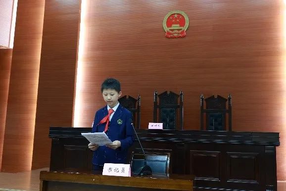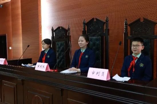 到达模拟法庭之后,学生们穿戴着红领巾和统一的校服,整齐地站在模拟法庭前面,对眼前的建筑感到十分惊奇和激动。大家有序进入法庭内,端正地坐在自己的座位上。很多小学生自告奋勇,主动承担起了审判员、审判长、书记、原告和被告等角色,体现了他们很高的积极性和主动性。