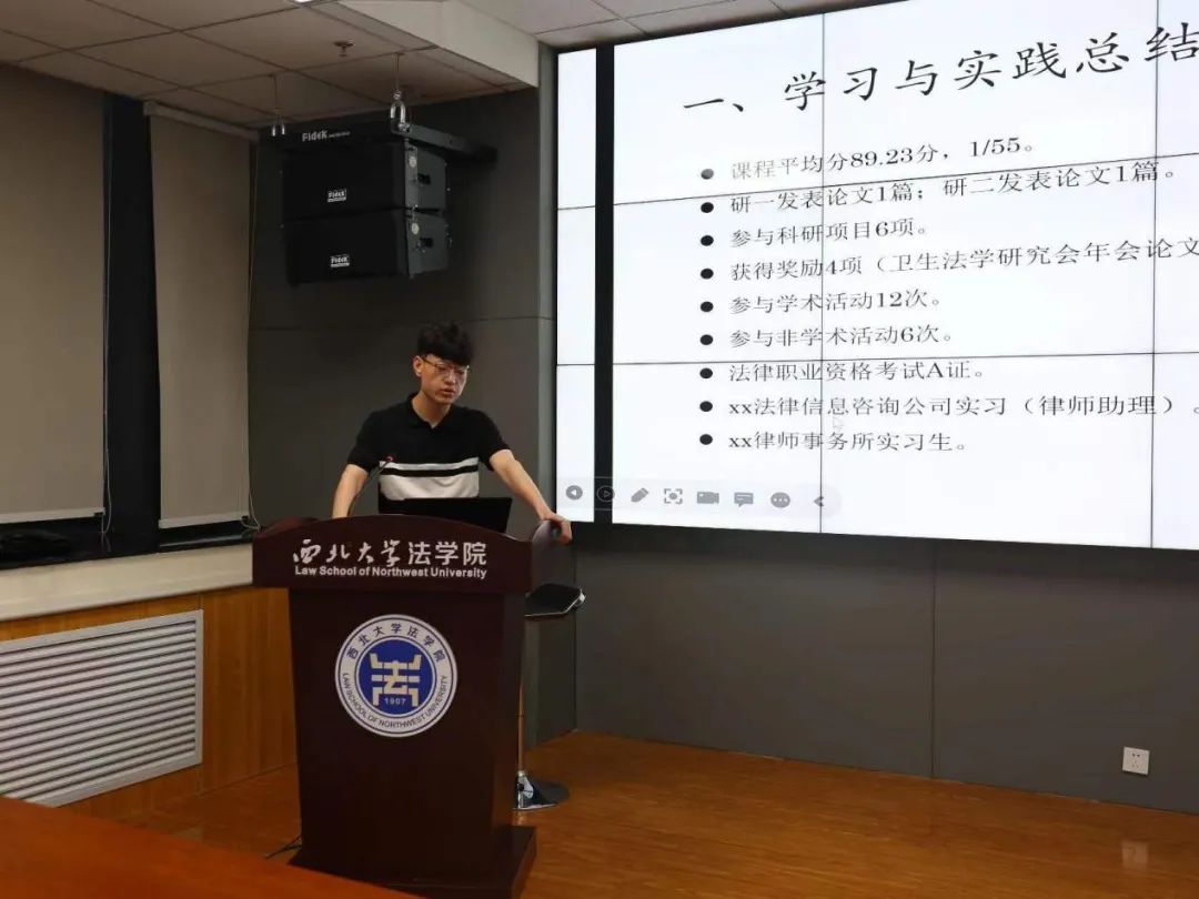 刘选同学通过分享自己一年来学习和活动情况,向我们展示了自己在研究生阶段的学习规划,为我们今后的学习提供了指引与帮助。最后,在法律职业资格考试、毕业论文、职业规划以及求职简历、求职经验教训等方面交流了自己的一些心得体会。