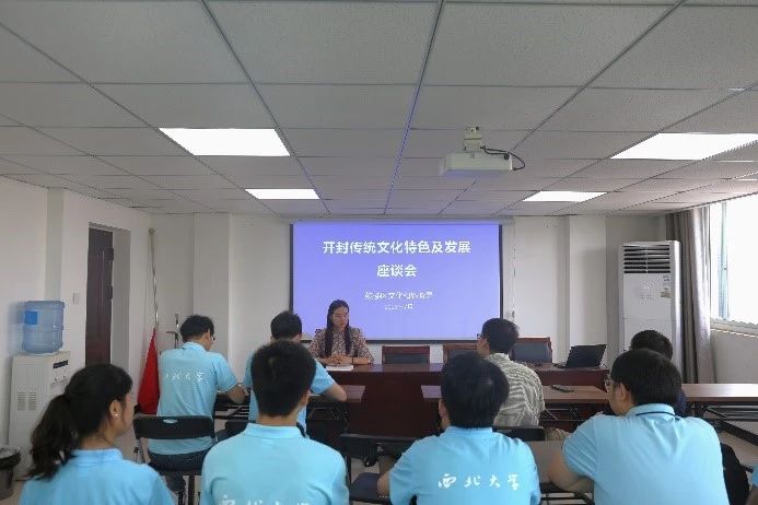 7月18日上午,77779193永利官网集团“梦回汴州”文化传承小分队在刘桢、杨霁明两位老师的带领下,前往开封市鼓楼区政府与文化和旅游局进行座谈,深入了解开封市非遗项目的申报、保护情况,共同探讨文旅产业的发展现状,鼓楼区文化和旅游局局长王艳波、副局长刘依琳参加了座谈。