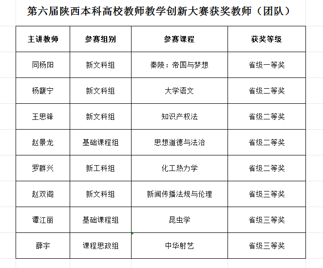 我院王思锋教授团队在第六届陕西本科高校教师教学创新大赛中获得二等奖
