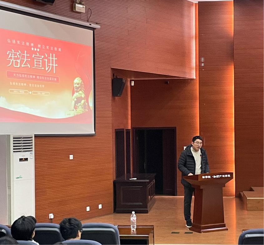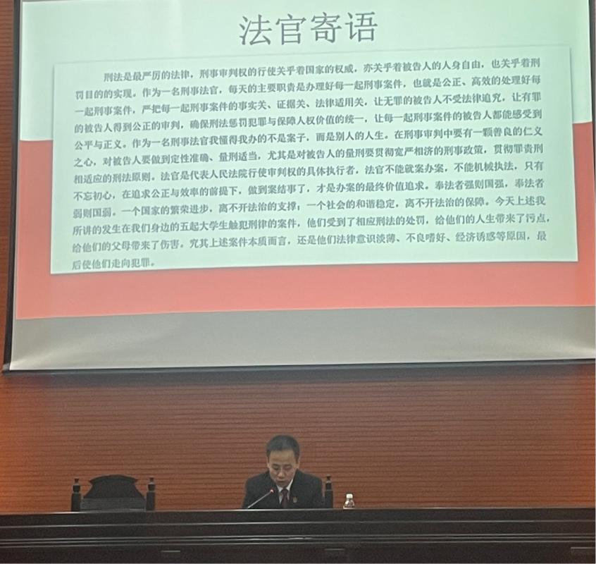 宣讲内容由“弘扬宪法精神,坚定法治信仰”的重要性、“尊法、畏法、守法,做法治中国建设优秀人才”两部分组成。何向阳法官从专业角度向学生们阐述了宪法的生命与权威所在,指出宪法是国家的根本大法,是保障公民权利与规范国家权力的基石,与每个人的生活紧密相连。 同时,何向阳法官从自身多年办案经验入手,为同学们分享了涉及大学生危险驾驶、诈骗、强奸、盗窃和帮助信息网络犯罪等典型案件,由这些引人深思且贴近学生生活的真实案例提醒同学们要以案为鉴,立志高远,踏实肯干,努力成长为有法治信仰的人!