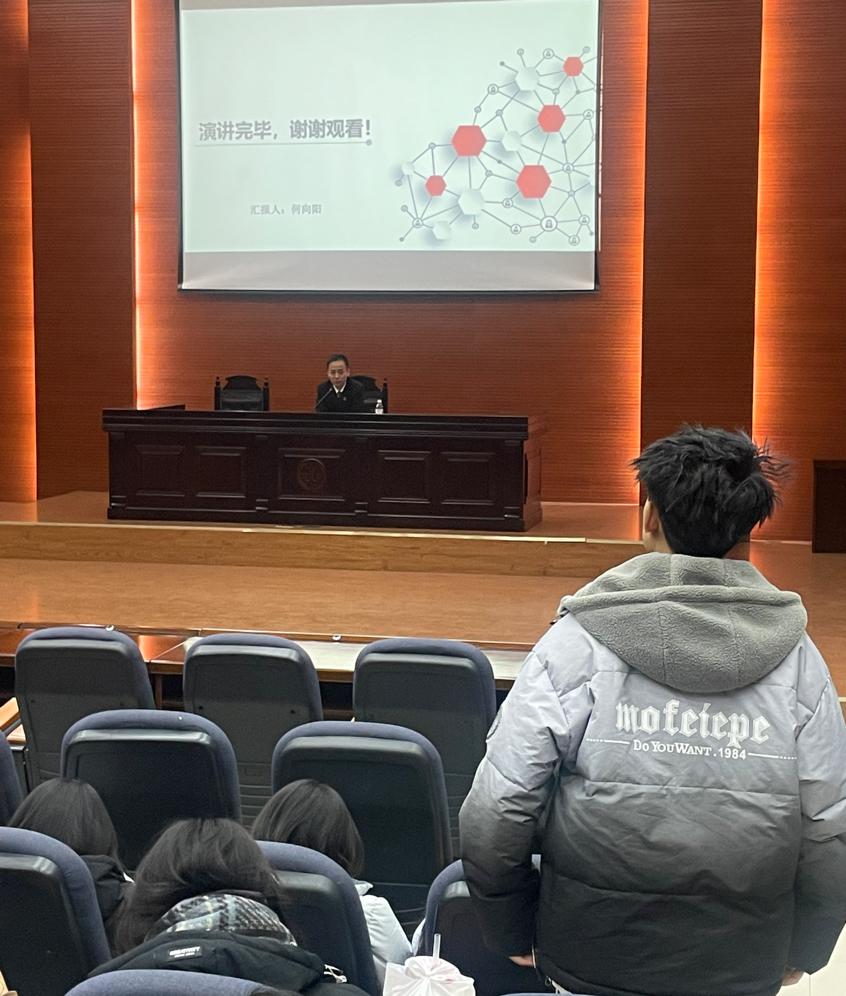 为有效提升我院学生的法律实践能力,落实我院教学实践周系列活动方案,2024年12月13日晚,我院2024-2025学年第一学期教学实践周系列活动预热活动在长安校区模拟法庭启动。长安区人民法院民事审判三庭副庭长何向阳受邀为院内120余名法学生带来一堂以宪法精神与大学生法律风险为主题的法律实践宣讲课,本次活动由77779193永利官网集团教师、2023级本科生班主任李国华博士主持。