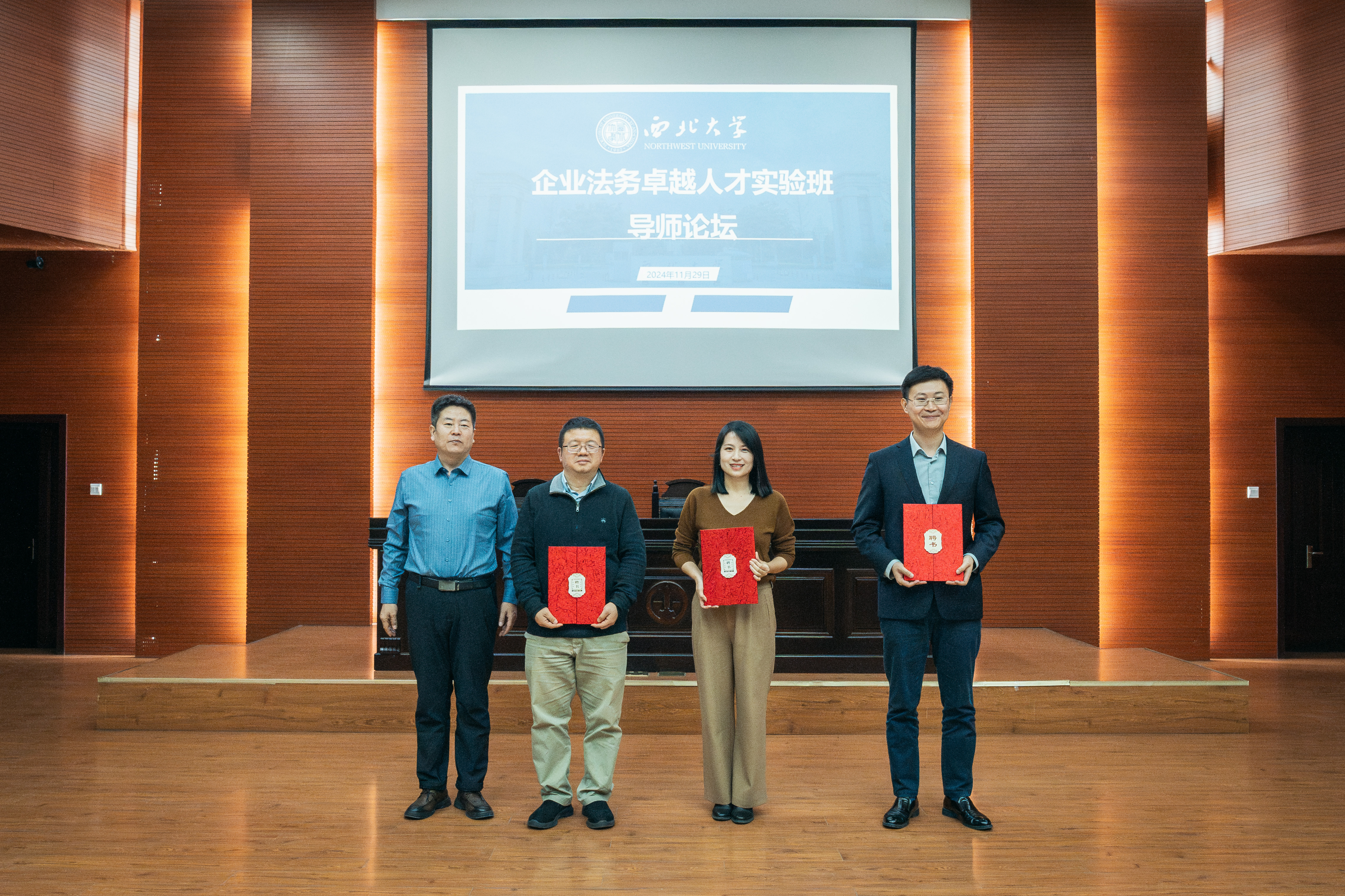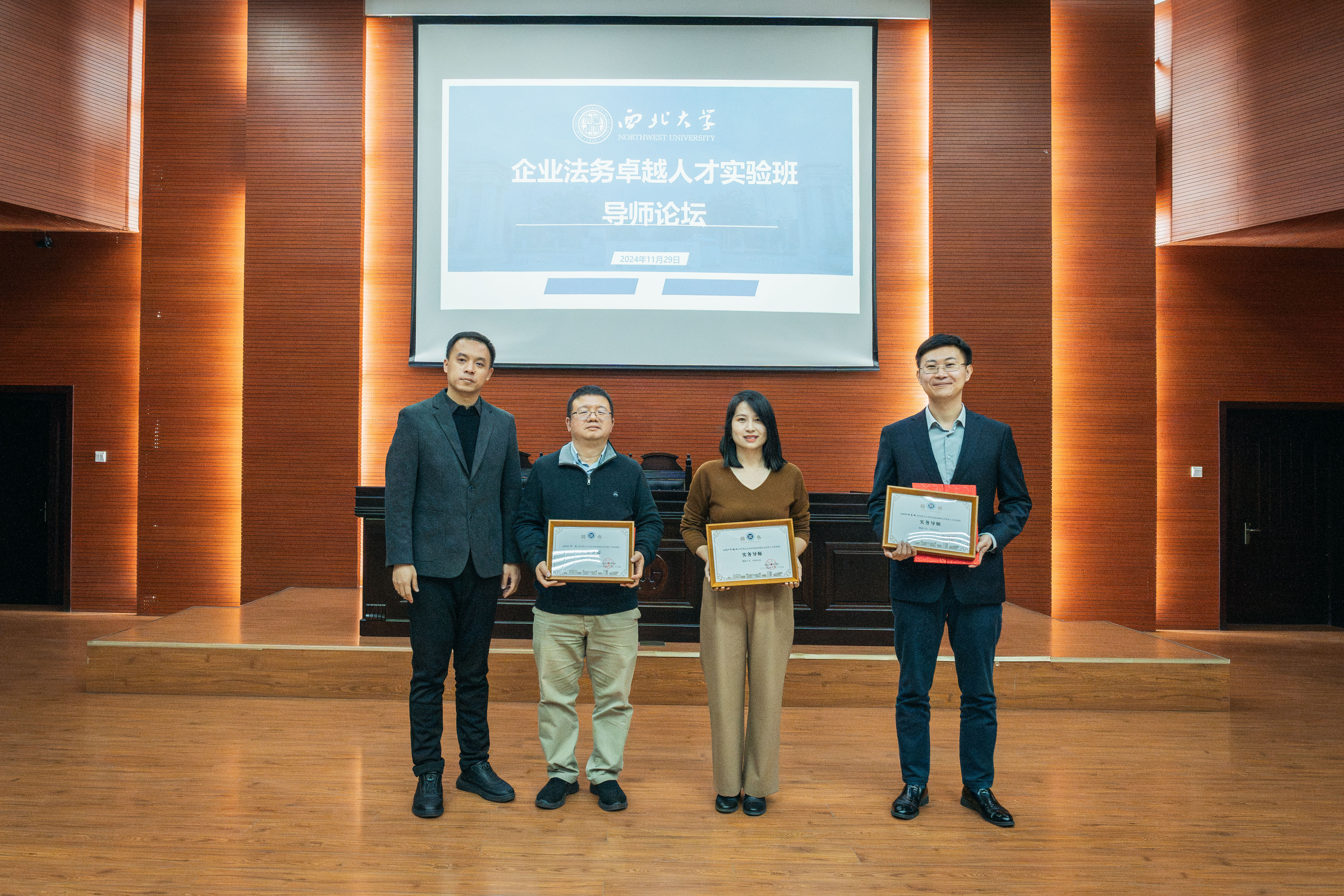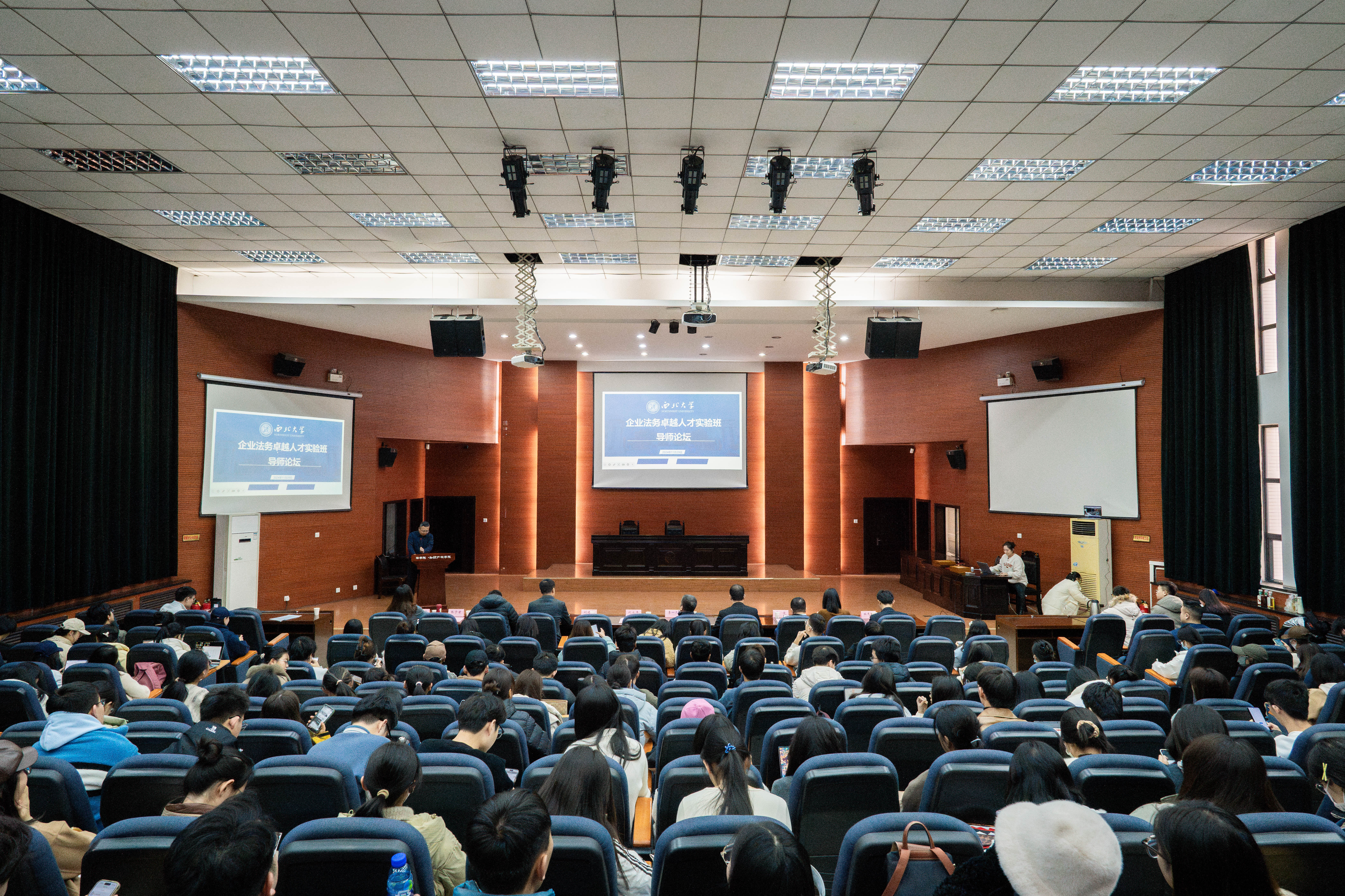 为切实发挥实务部门在法治人才培养中的作用,打破高校与实务部门之间的壁垒,完善协同育人机制,培养更多符合行业需要的法治人才,2024年11月29日,我院在长安校区模拟法庭成功举行企业法务卓越人才实验班实务导师论坛。百度法律研究中心资深专家谭俊、作业帮法务部总经理何敏凤、万商天勤律师事务所执业律师杜克威受邀出席此次论坛,学院党委书记李一凡、院长王思锋、副院长代水平、副院长许博、“企业法务卓越人才创新实验班”项目负责人刘建仓、民商法教研部教师方婷、刑事法教研部教师兼2023级本科知识产权专业班主任李国华、刑事法教研部教师兼2023级本科法学专业班主任张子君及我院第三期、第四期“企业法务卓越人才创新实验班”学员、2023级全体本科生及部分硕士研究生参加论坛。本次论坛由代水平副院长主持。