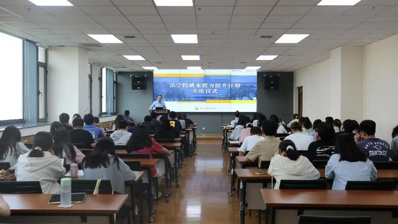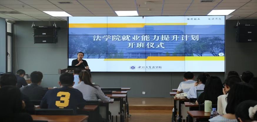 王思锋院长为仪式致辞。他表示,当前社会对高水平法律专业人才的需求依然旺盛,法律专业人才的竞争日趋激烈,面对严峻的就业形势,同学们需要不断提升自身专业能力和综合素质,掌握求职主动权。就业能力提升训练营的开办,对同学们明确求职目标、丰富求职技能、提升综合素质、培养职场思维等具有重要帮助,希望同学们能够从训练营中学有所得,提升个人能力,实现高质量就业。