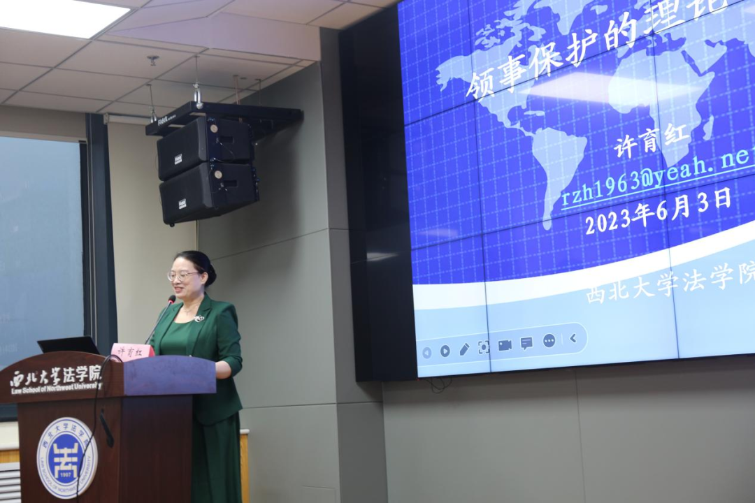 2023年6月3日,外交部领事司干部、中国国际私法学会理事、中国政法大学法律硕士学院兼职教授许育红教授受邀做客我院法学前沿论坛,为我院师生带来了题为“领事保护理论与实践”的报告。讲座由学院王秀梅教授主持,王思锋院长致欢迎辞,副院长代水平、田海副教授以及部分学生代表聆听了讲座。
