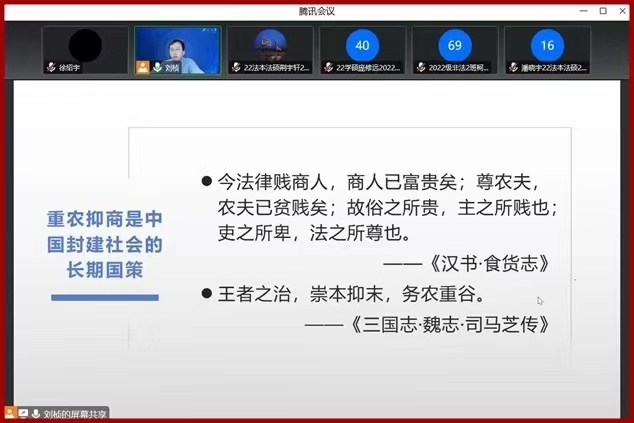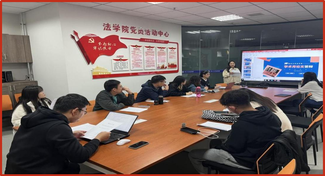 本次学术活动月共计开展了二十场研究生学术报告,参加人数300人,主题涉及民商法、刑法、诉讼法,知识产权法等多个方面。每位同学就自己感兴趣的学术热点问题撰写论文,进行10分钟左右的汇报,其他同学展开讨论,最后由老师进行点评参加点评的老师有杨丽珍教授、代水平副教授、戴炜副教授、龙井瑢副教授、涂慧副教授、田海副教授、李奕霏副教授、杜路副教授、李武健老师、吕康宁老师、葛恒浩老师、黄菁茹老师、李国华老师、苟震老师、方婷老师、焦琰老师、刘桢老师、侯欢老师、闫强乐老师、高小芳老师