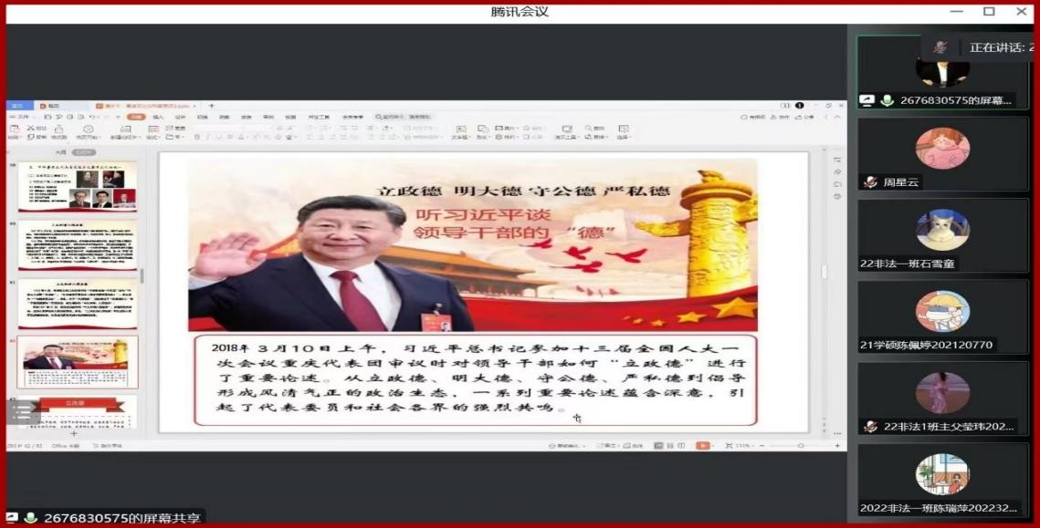 心理健康教育主题活动中,邀请了我校心理健康教育中心张文芳老师以研究生压力管理与情绪调适为主题,通过互动概括性的总结了研究生现有的学业压力和生活压力,向学生传播心理健康知识,引导同学们树立积极健康理念,培养健康生活方式。学术活动月期间还组织了携手砥砺前行,共创优良学风学风建设倡议,开展了七天习惯养成学习打卡活动,包括英语、阅读、法考以及运动四个打卡赛道,参加打卡的研究生达三百余人。