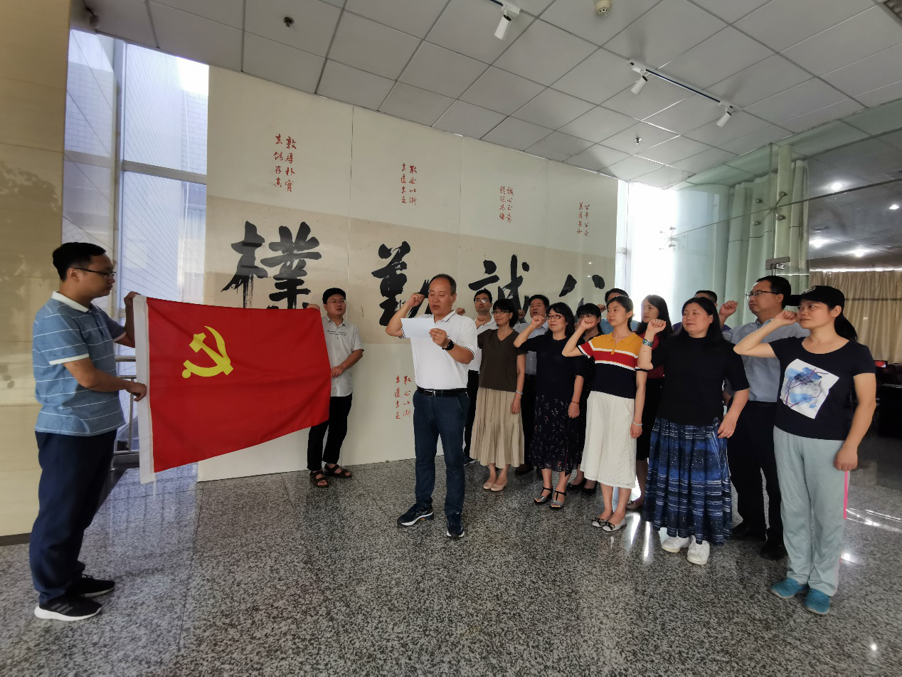 活动最后,全体党员在国旗下宣誓,重温入党誓词并合影留念。本次活动以建党99周年为契机,双方党支部通过举办创新性主题党日活动,深化了双方在支部建设方面的交流和合作,取得了满意的结果。