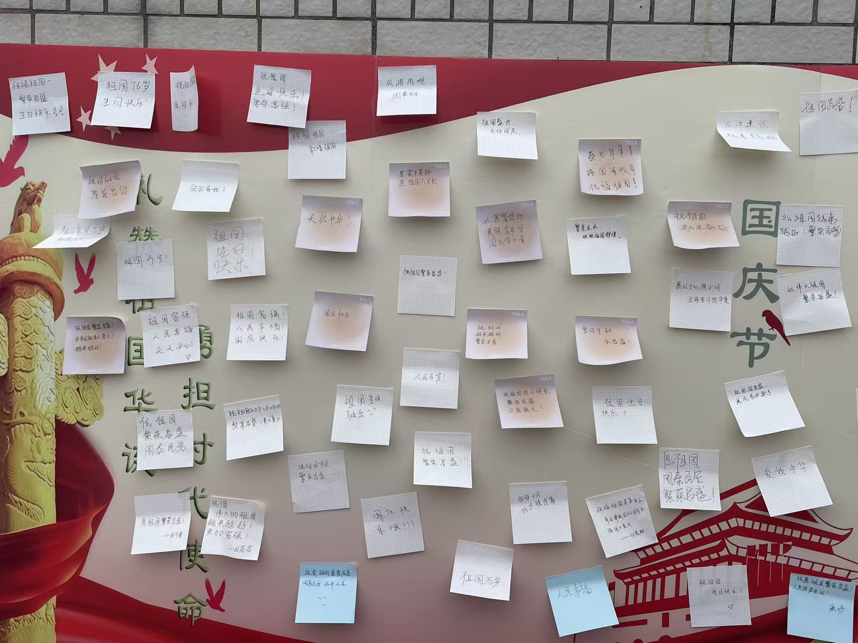 活动最后一个环节在西操场举办,由各参与者在宣传板上书写自己对祖国最美好的祝愿,一张张便利贴,承载着青年学生对祖国最赤诚的爱。