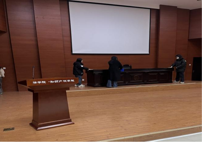活动当晚,参与劳动的德法兼修研习社同学们自带清洁工具前往基地报告厅和模拟法庭进行卫生清扫,营造干净整洁的校园环境。同学们用抹布将桌子擦干净并摆放整齐,用扫把和拖布将地面打扫干净并将垃圾清理干净。