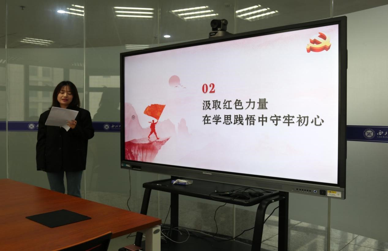 本次比赛的选手有民商法学支部方婷同志、宪法行政法与刑事法党支部苟震同志、本科法学党支部吴怡同志、行政支部问贝宁同志、2021级研究生党支部李艳妮同志和2022级研究生党支部肖旭梅同志。待选手们一个个展示完毕后,现场评委根据课程主题、课程内容、讲授技能、语言仪态、效果时间等维度综合考量,进行评选打分。