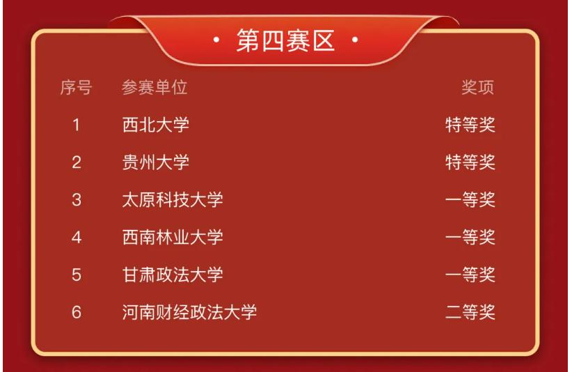 图 2 初赛研究生赛道第四赛区获奖名单