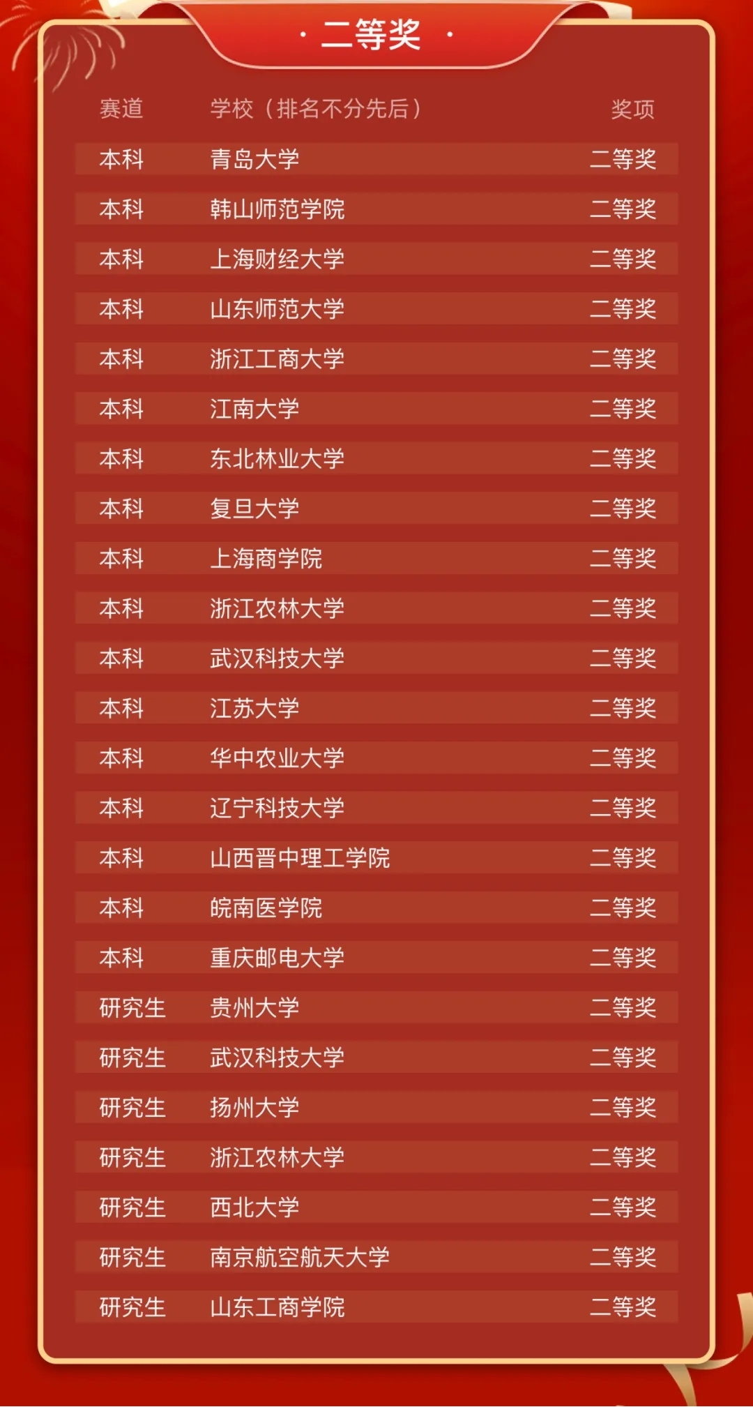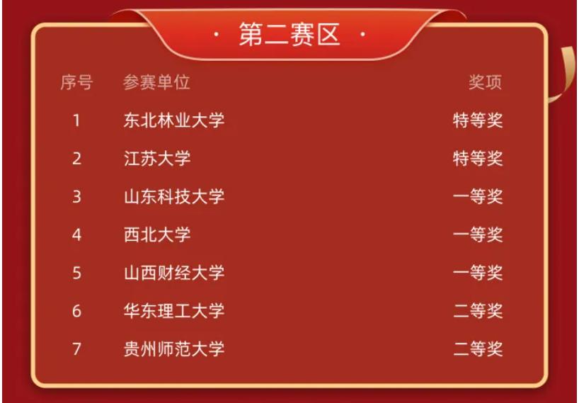 图 1 初赛本科赛道第二赛区获奖名单