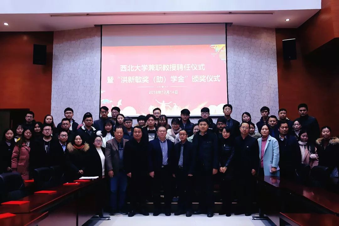 常江为洪新敏颁发了兼职教授聘书。与会老师为2018年度"洪新敏奖(助)学金"获奖和受助学生颁发了证书。