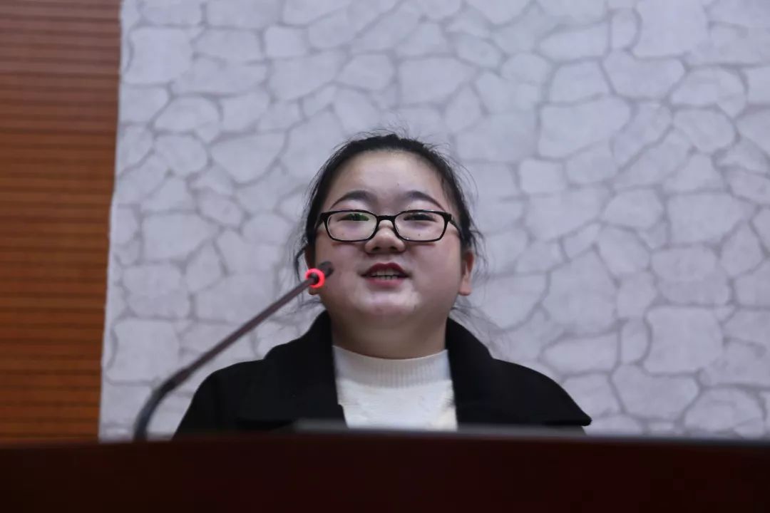李中正、许沙妙分别代表获奖和受助学生发言,他们在发言中感谢洪新敏校友的慷慨资助,感谢学校和学院的关心培养,表示今后将始终坚持社会主义法治理念,坚持德法兼修,恪守"求真务实"之精神,秉承"公诚勤朴"之校训,感恩社会,奉献社会,为法治中国建设而努力奋斗!