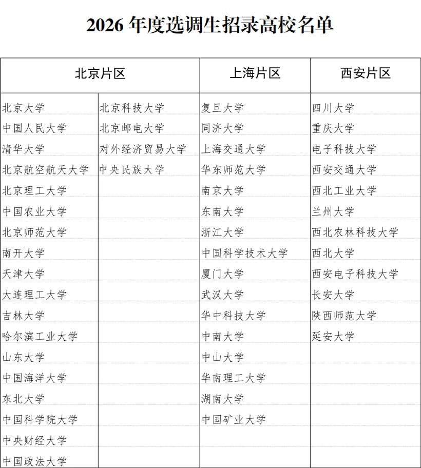 学校同意推荐的,登录“2026年度陕西省选调生招录报名”系统上传《报名推荐表》(PDF文档)后进行报名。报名专项选调的,只可选择一个岗位,也可同时报名基层选调;报名基层选调的,可梯次选择5个志愿,志愿只选到县(市、区),西安市所属县(区)只可选1次。