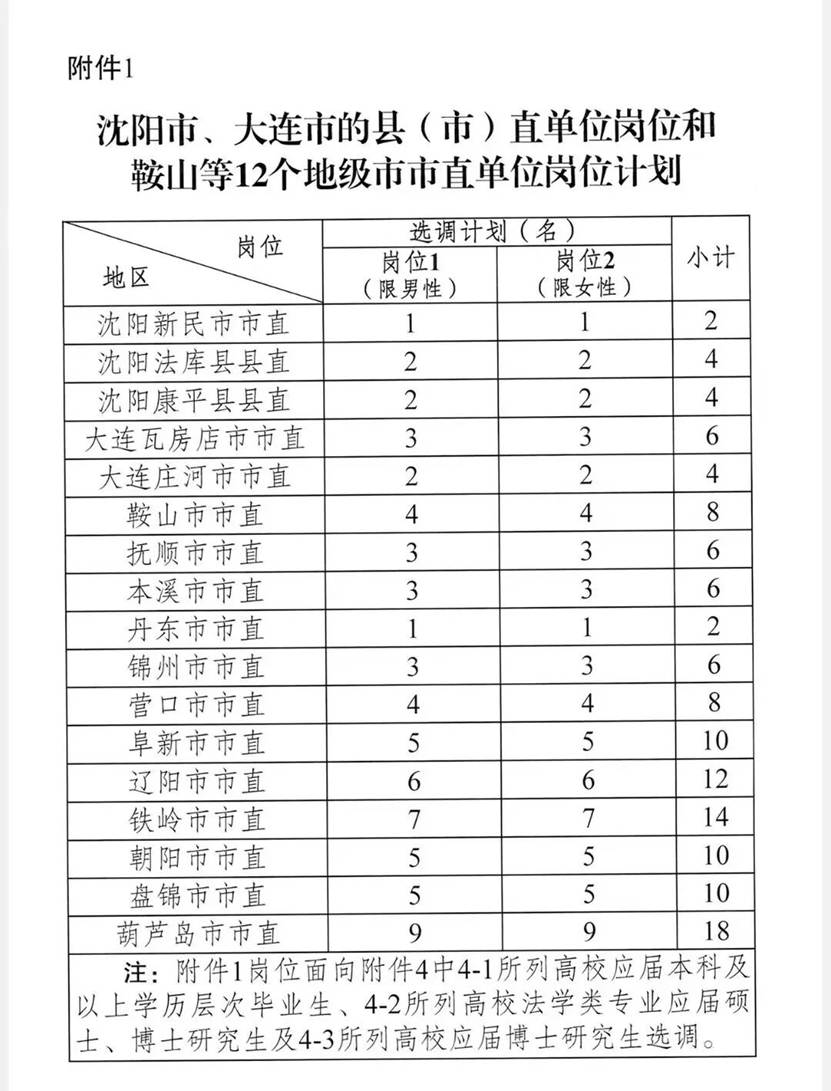 附件:1.沈阳市、大连市的县(市)直单位岗位和鞍山等12个地级市市直单位岗位计划
