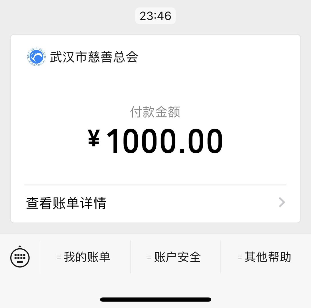 2020年初始,新型冠状病毒感染肺炎就像一场风暴席卷全国,全国乃至全世界的人们都伸出援助之手帮助武汉渡过难关。由于购买不到物资,只好选择捐款的方式表达我的一份心意。我相信在所有人的努力下,我们一定可以战胜疫情,寒冬终会过去,我们一起静待春暖花开时。