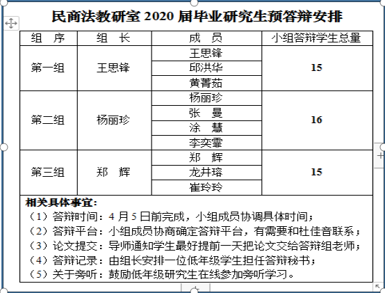 民商法学教研部预答辩安排